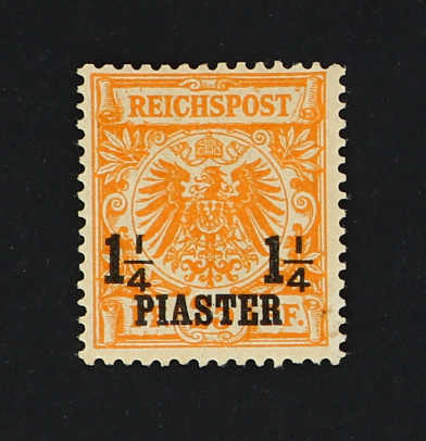 1899, 1¼ PIA auf 25 Pfg. Aufdruckausgabe dunkelorange, mit Aufdruckfehler "1 vom linken ¼ verkürzt", ungebraucht, farbfrisch, einwandfrei, seltene Kombination der teuren Farbe mit dem Aufdruckfehler! Fotoattest Jäschke-Lantelme BPP (ME