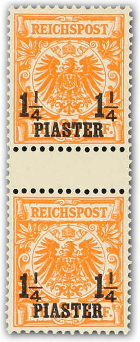 1889, 1¼ P. auf 25 Pfg. Krone/Adler gelblichorange, postfrisches Zwischenstegpaar, farbfrisch und gut gezähnt, sign. R. Steuer VÖB, einwandfrei (ME 450,-)