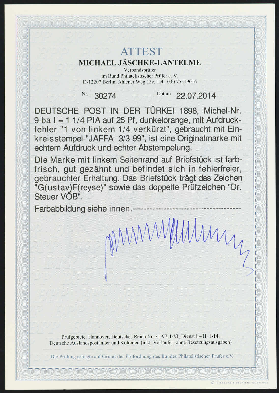 Fotoattest Jäschke-Lantelme BPP (ME 950,-++) (Image) (imagea)