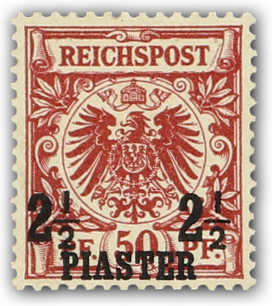 1889, 2½ PIA auf 50 Pfg. Aufdruckausgabe (lebhaft)bräunlichrot, dunkelrosarot quarzend, ungebraucht, einwandfrei, signiert, Fotobefund Jäschke-Lantelme BPP (ME 440,-) (Image) (imagea)