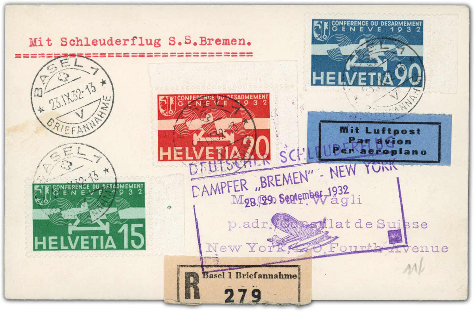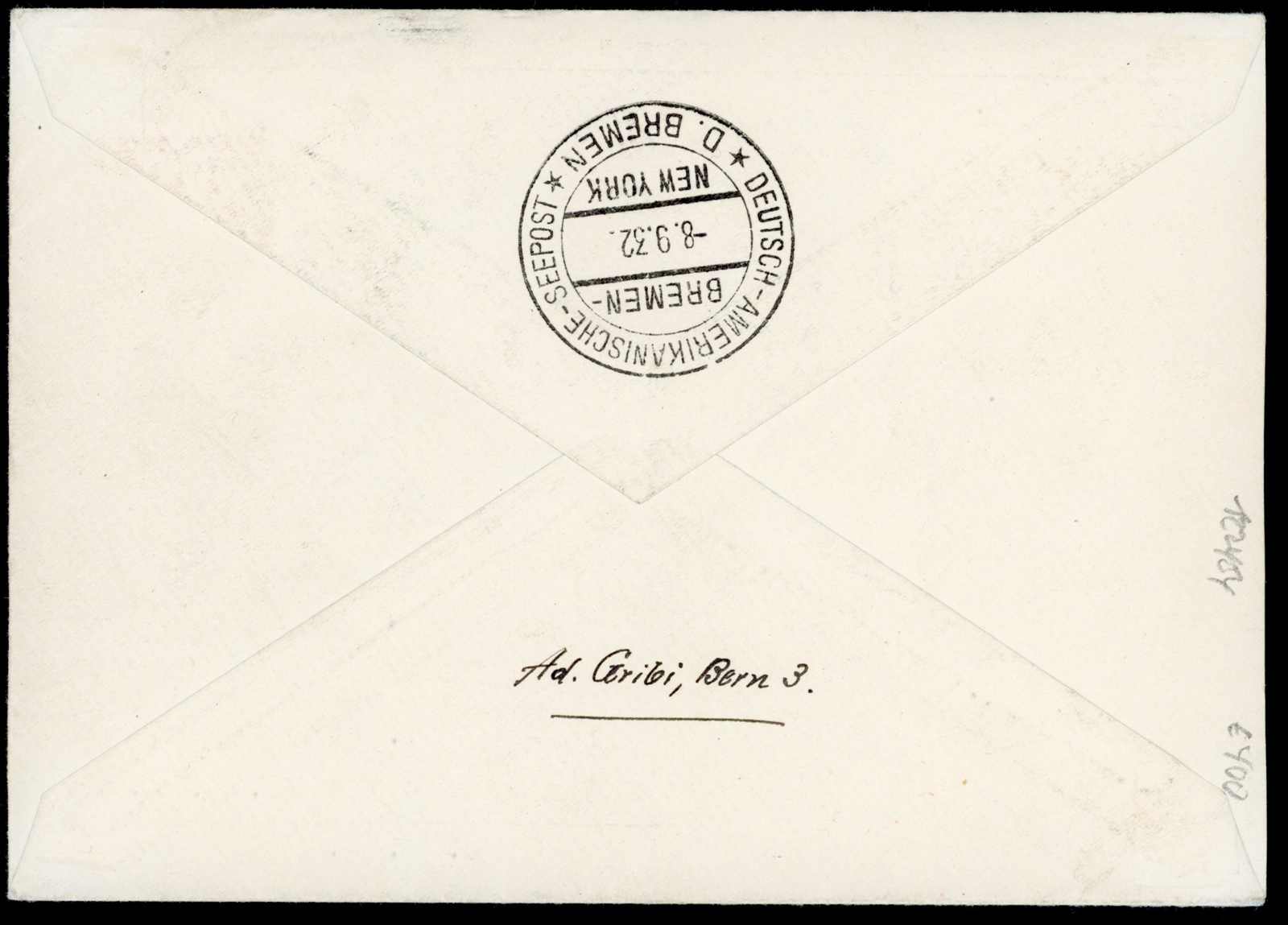 1932, Zuleitungspost Schweiz, R-Brief ab Basel 23.9.32 mit Katapultflug Bremen - New York vom 28.9. nach New York 28.9. (Image) (imagea)