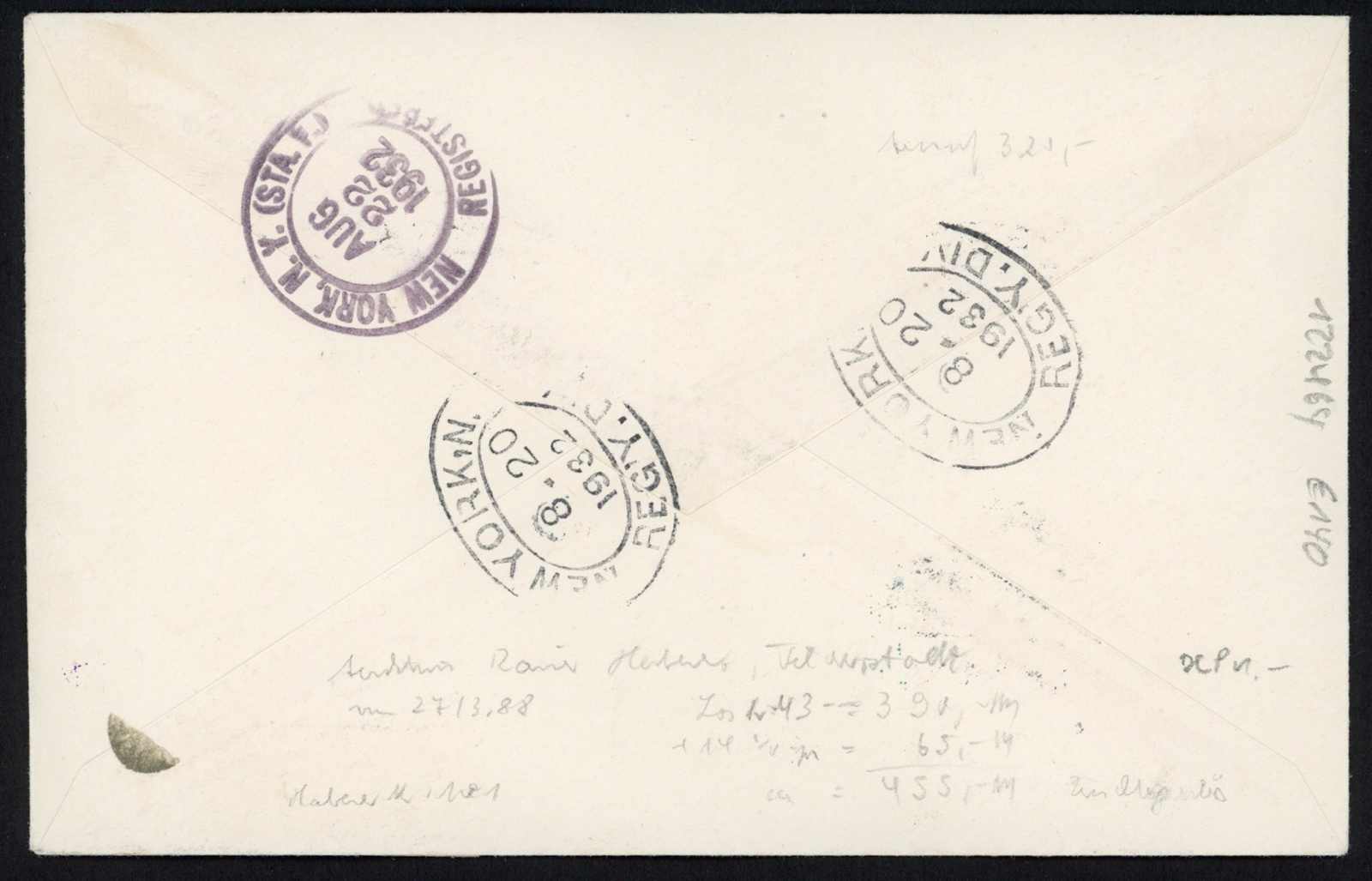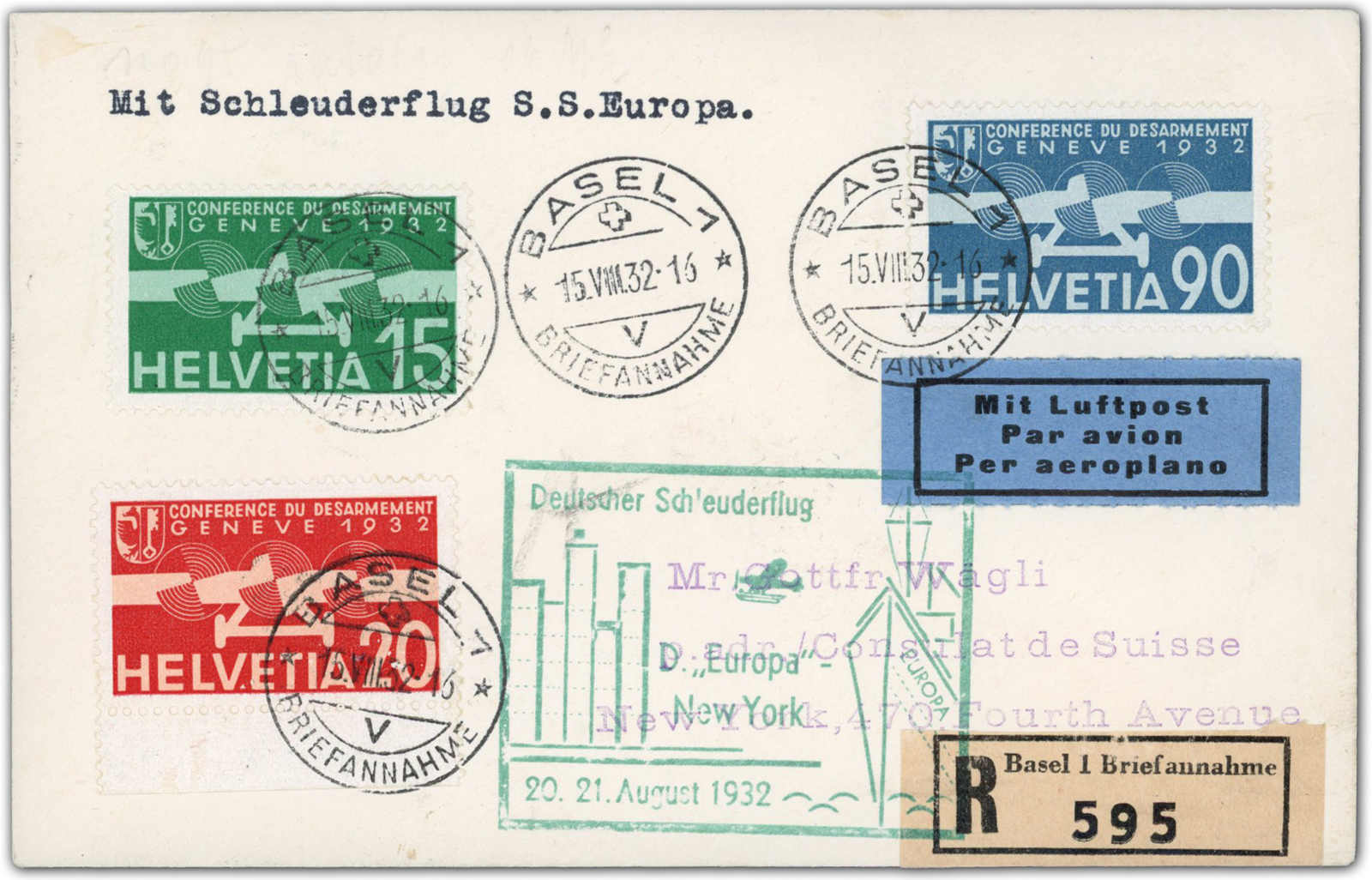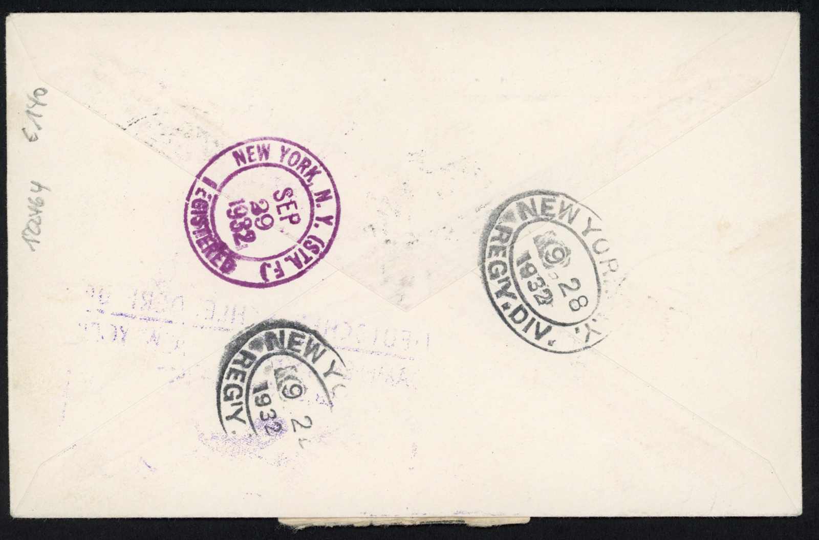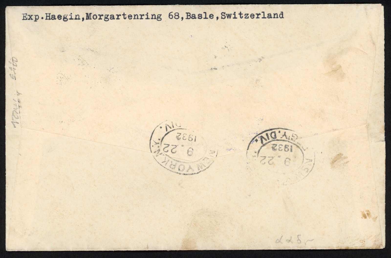 1932, Zuleitungspost Schweiz, R-Brief ab Basel 15.8. mit Katapultflug Europa - New York vom 20.8. nach New York 20.8. (Image) (imagea)