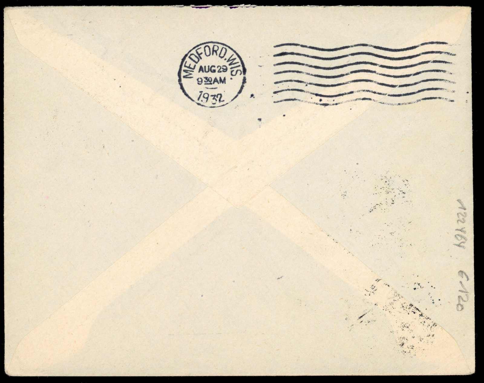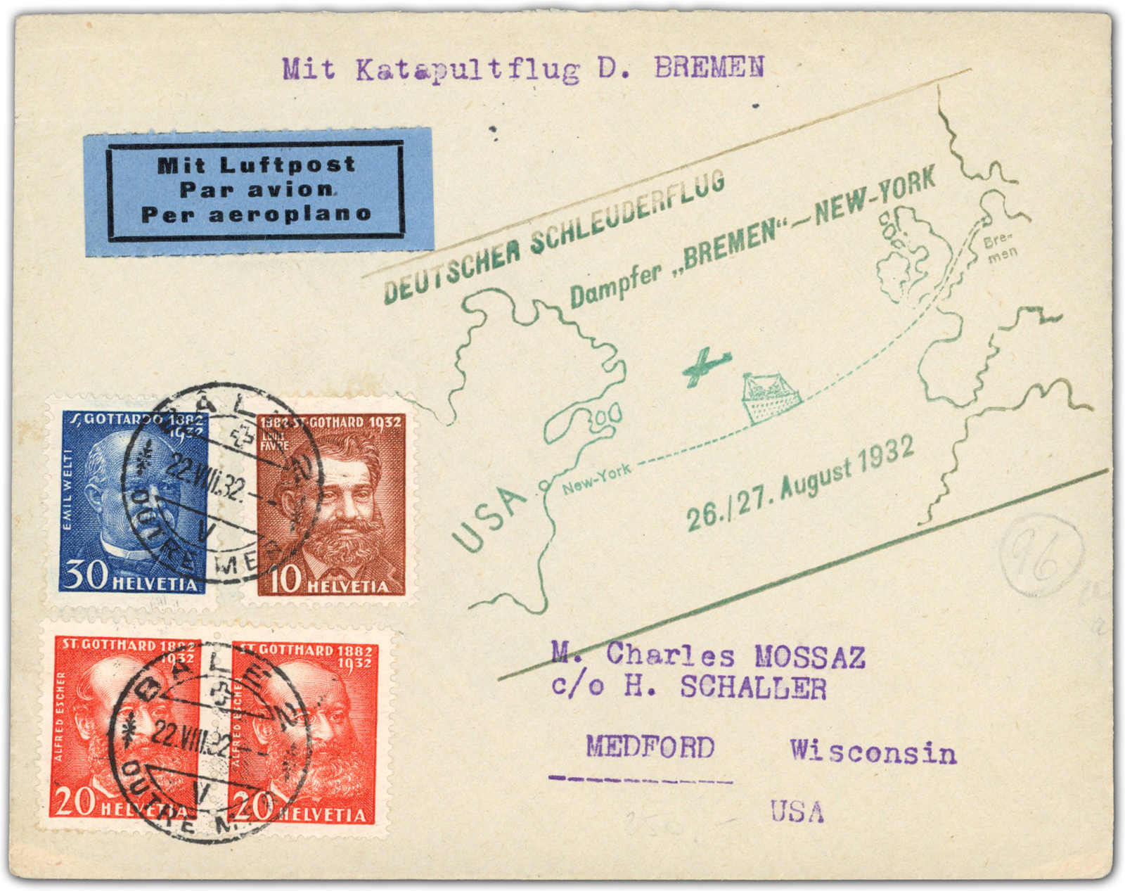 1932, Zuleitungspost Schweiz, Brief ab Basel 22.8.32 mit Katapultflug Bremen - New York vom 27.8. nach New York, adressiert nach Medford 29.8.