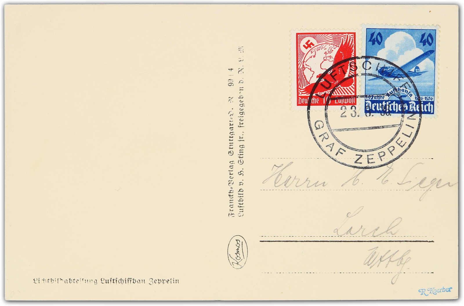 9652 Brief MichelZeppelinundLuftp image1936, Überführungsfahrt Friedrichshafen - Frankfurt, Bordpost-Fotokarte vom 23.6.36 (Image) (imagea)