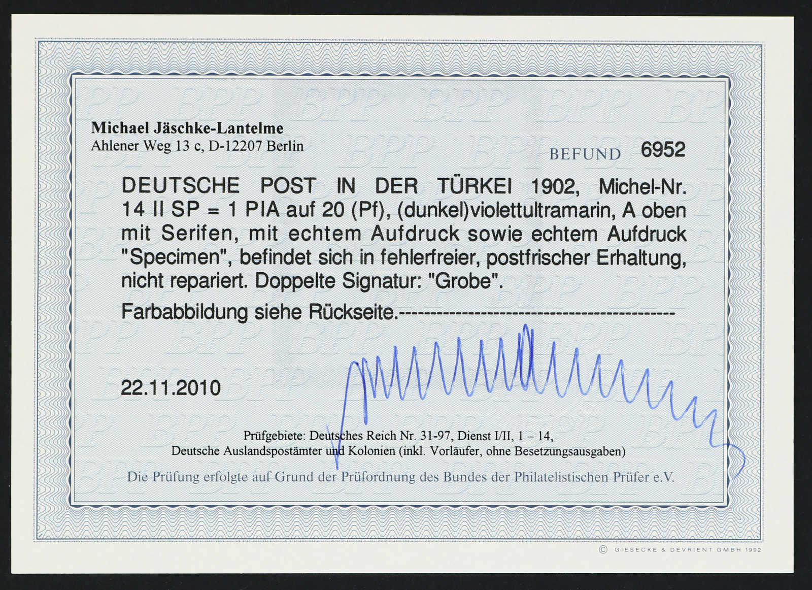 Jäschke-Lantelme BPP (ME 500,- für postfrisch) (Image)