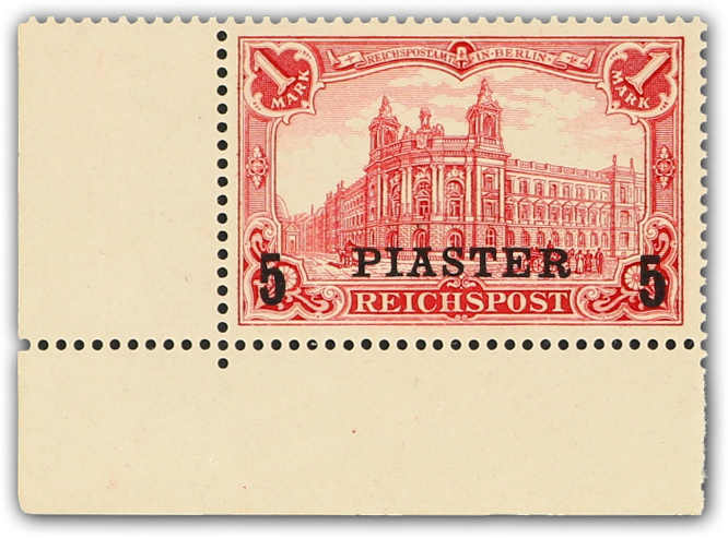 1903, 5 PIA auf 1 M. Aufdruckausgabe dunkelkarminrot, Aufdruck-A oben mit Serifen, postfrisches Exemplar aus der unteren linken Bogenecke, unsigniert, Fotoattest Jäschke-Lantelme BPP (ME 500,-+) (Image) (imagea)