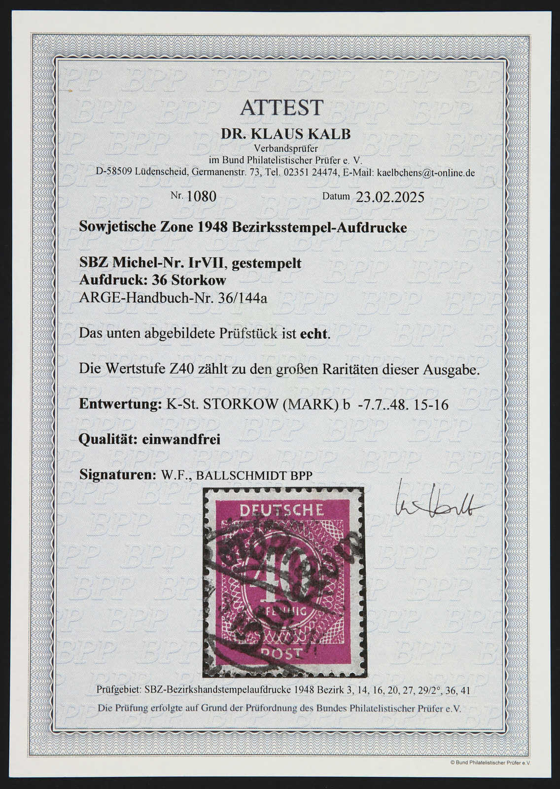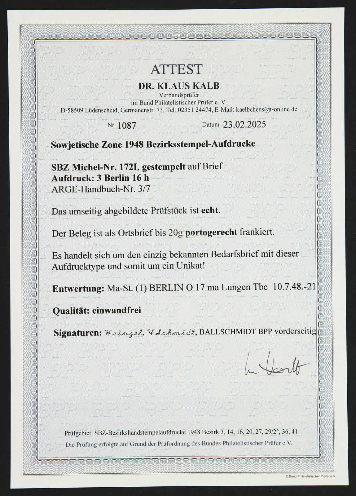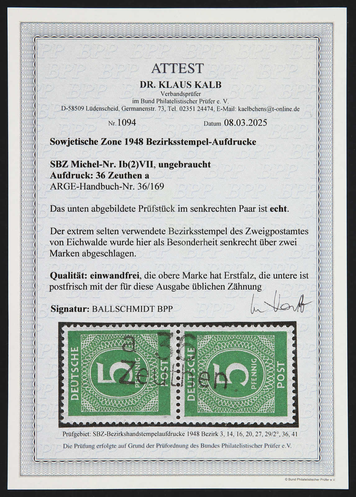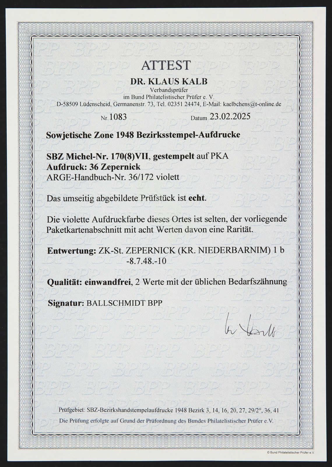 signiert Ballschmidt BPP, Fotoattest Dr. Kalb BPP 02/2025 (Image)