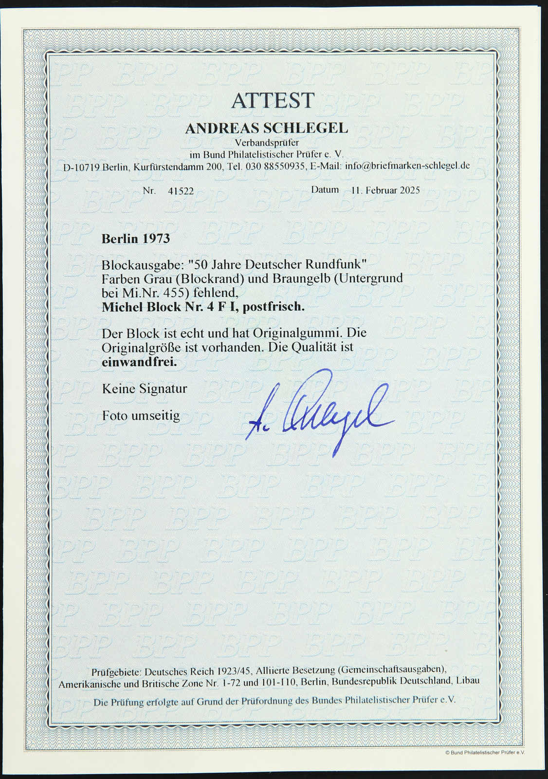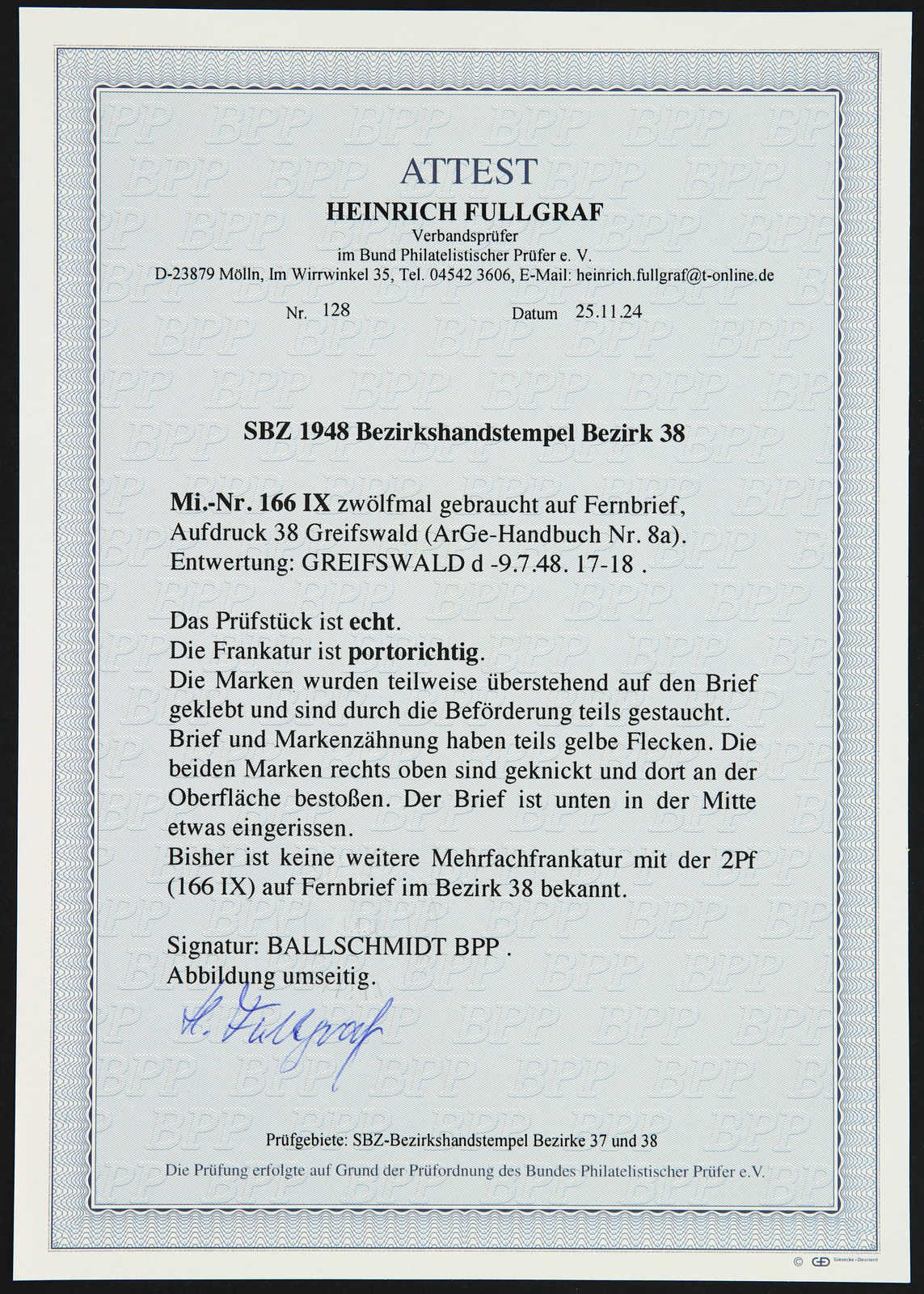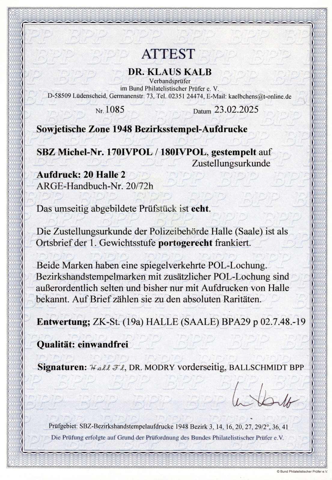 signiert Ballschmidt BPP, Fotoattest Dr. Kalb BPP 02/2025 (Image)