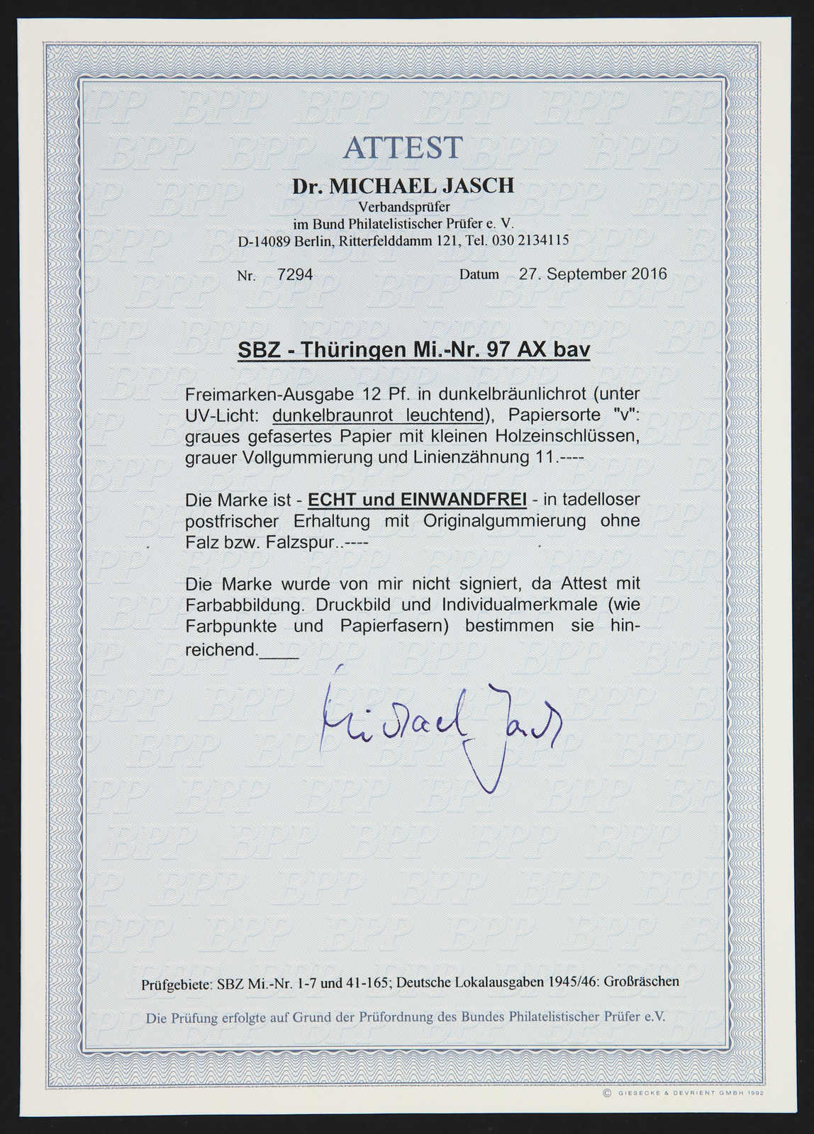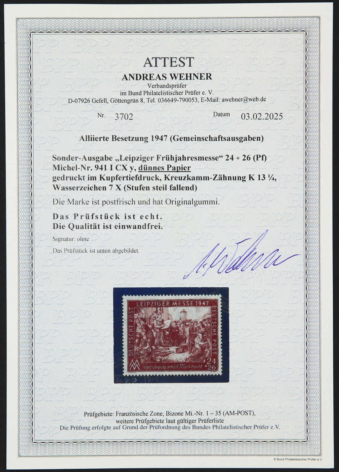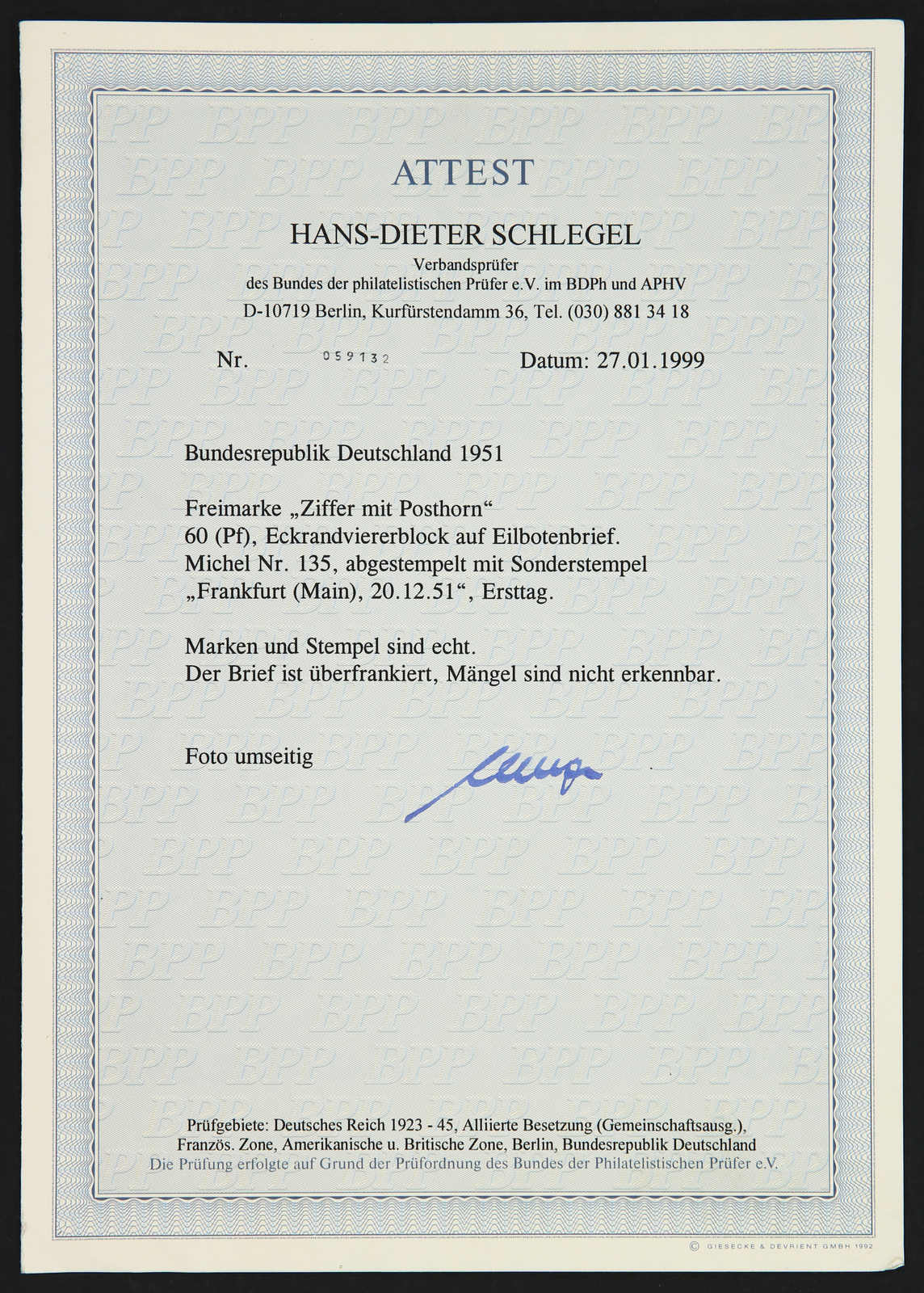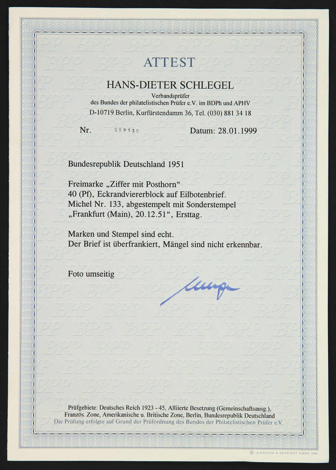 signiert Ballschmidt BPP, Fotoattest Dr. Kalb BPP 02/2025 (Image)