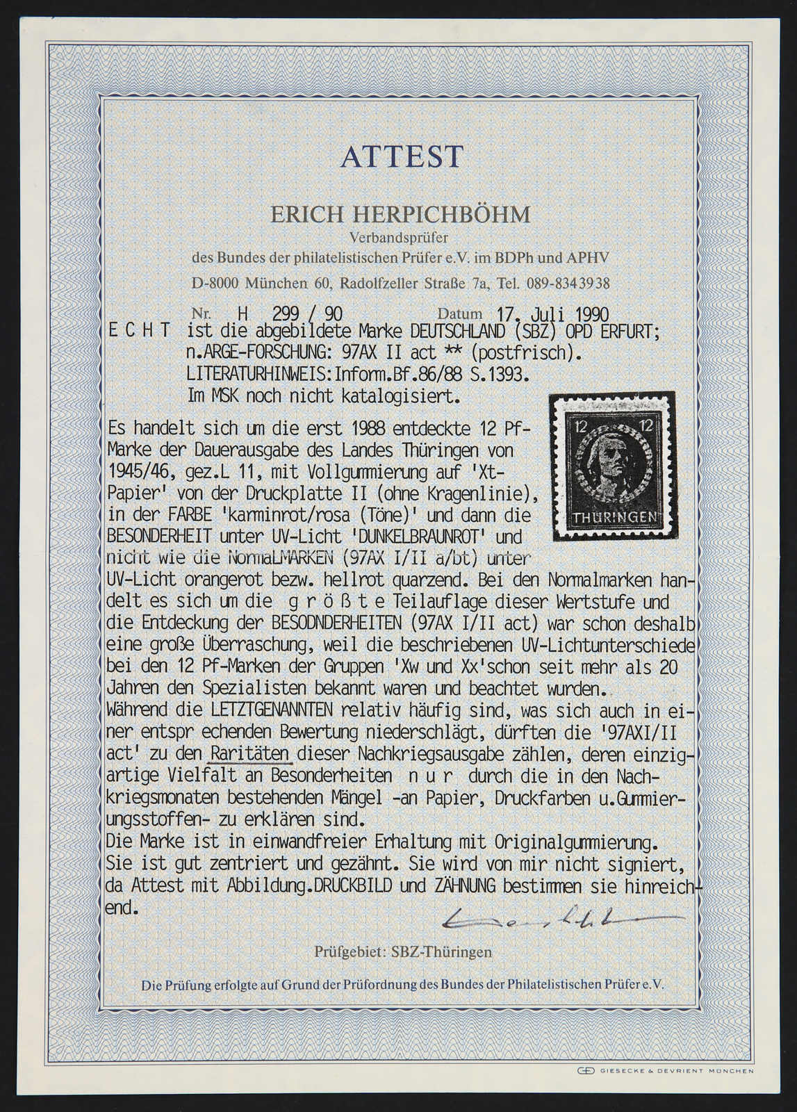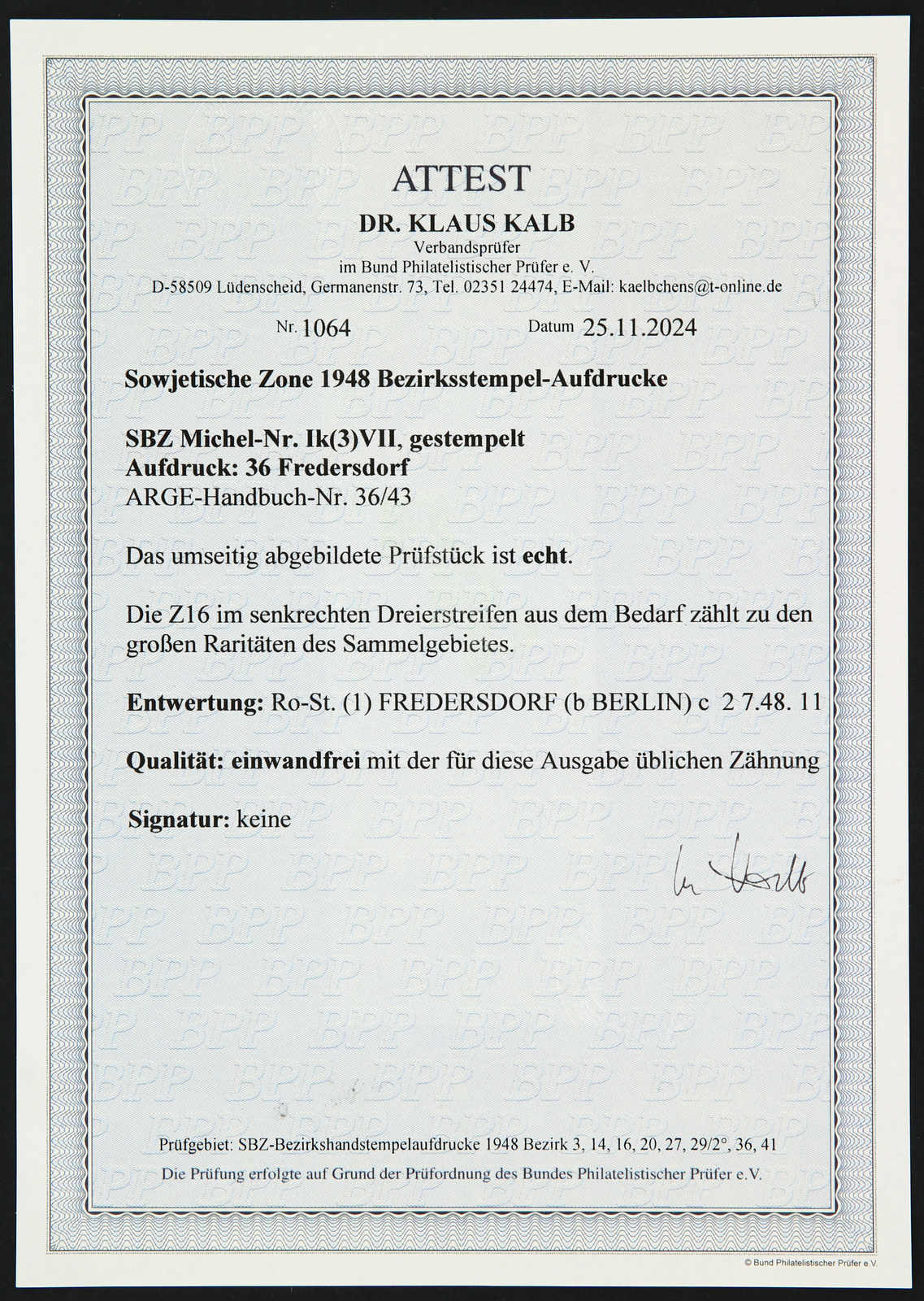 Raritäten des Sammelgebietes! Fotoattest Dr. Kalb BPP 11/2024 (Image)