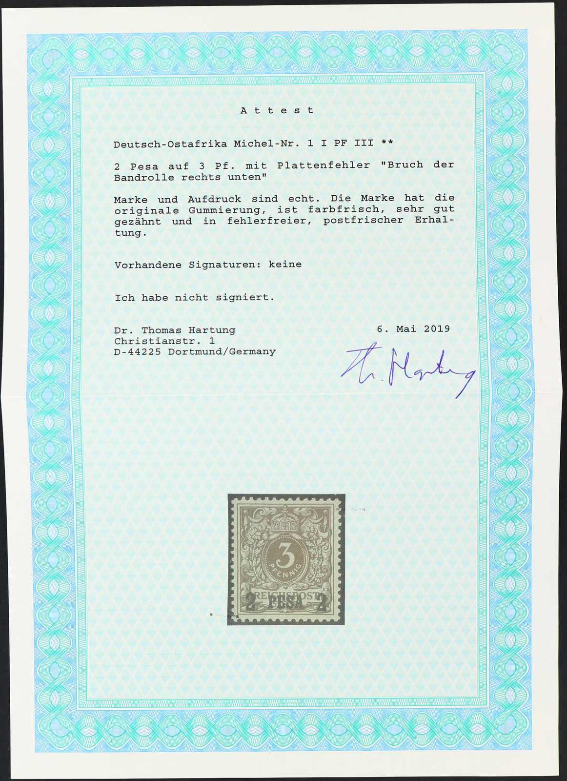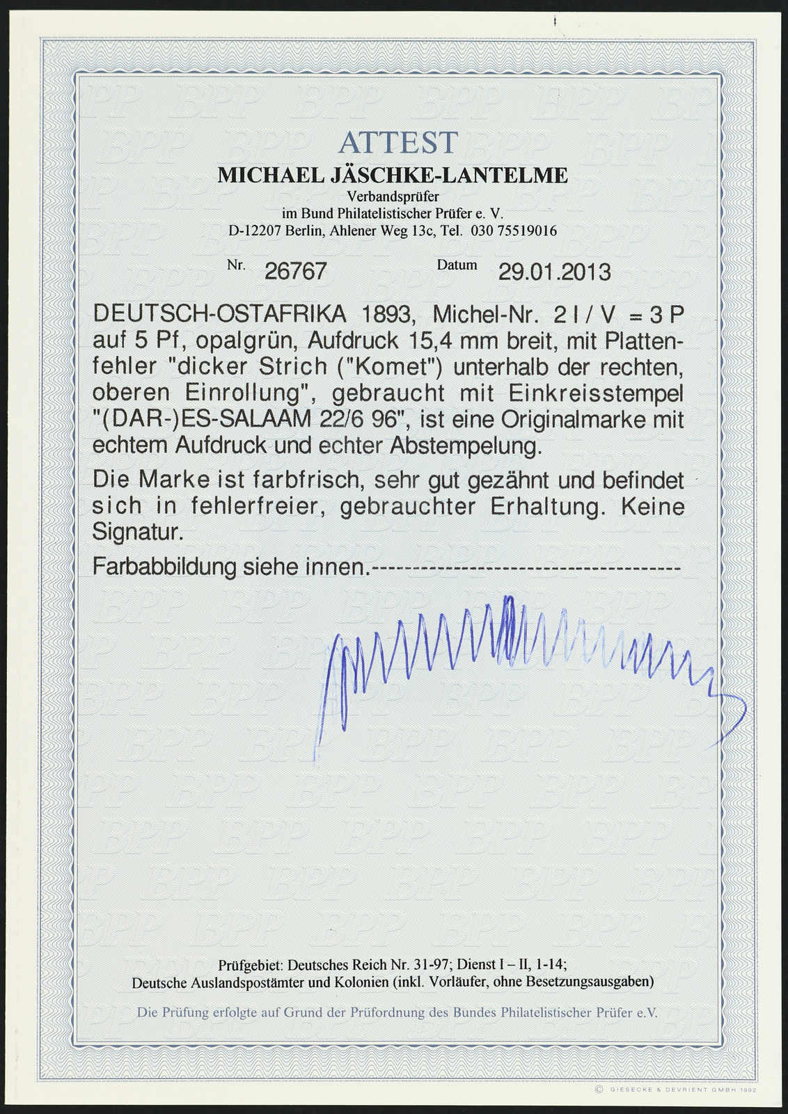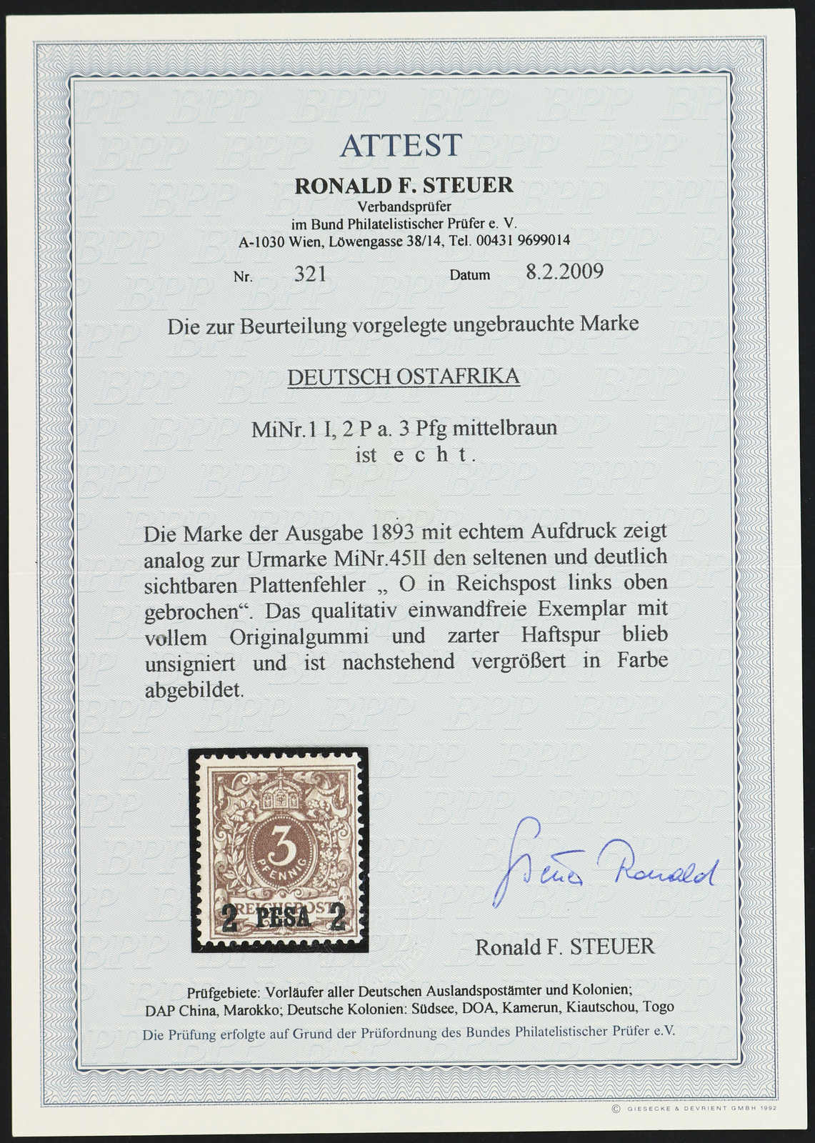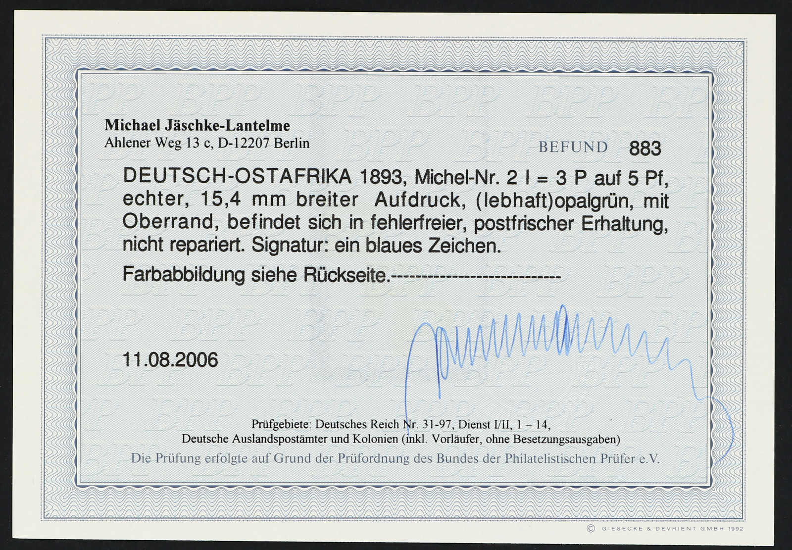 Get Market Data for [German East Africa Michel: 2 I PF V] Visual Pricing Guide Sample Census