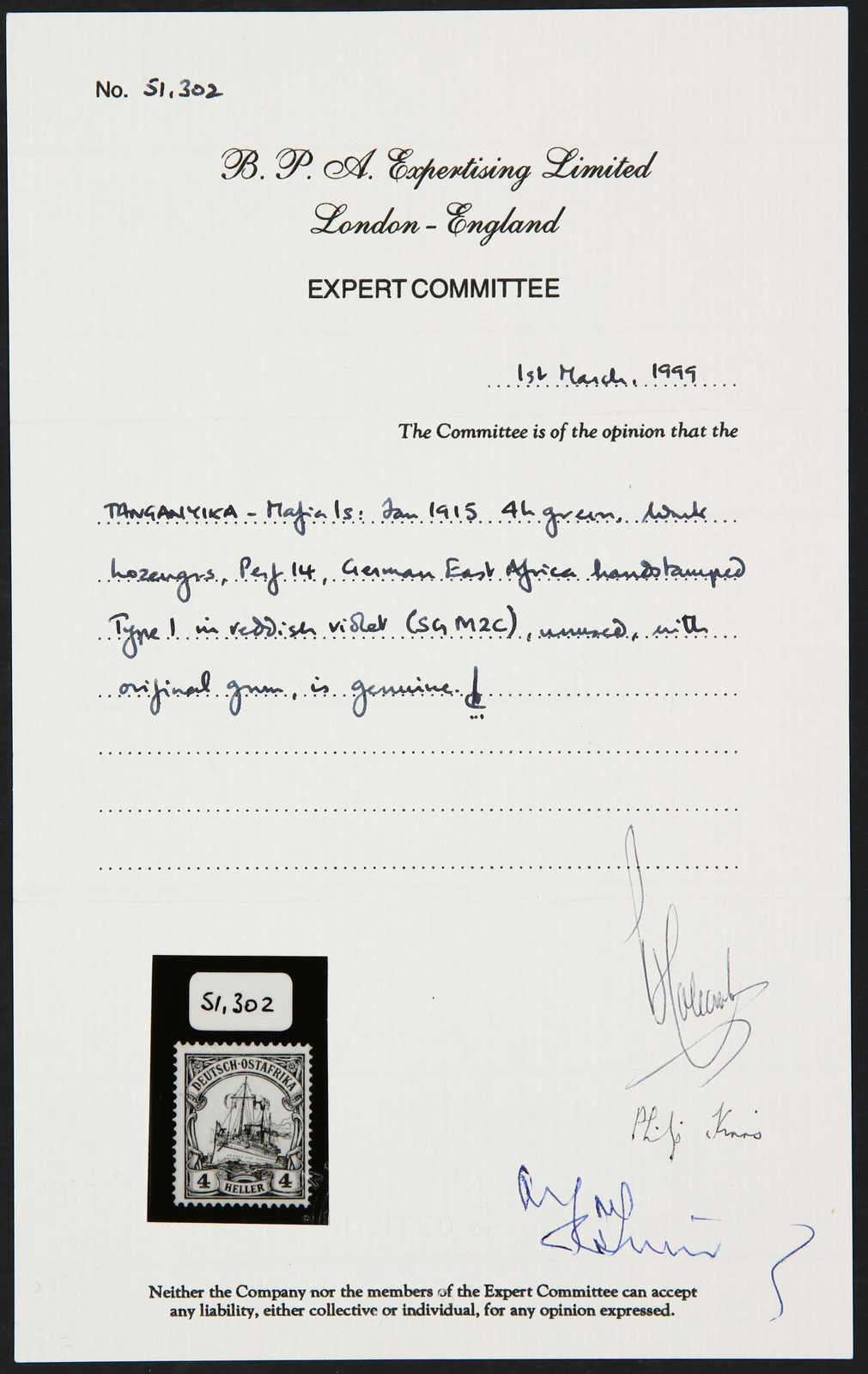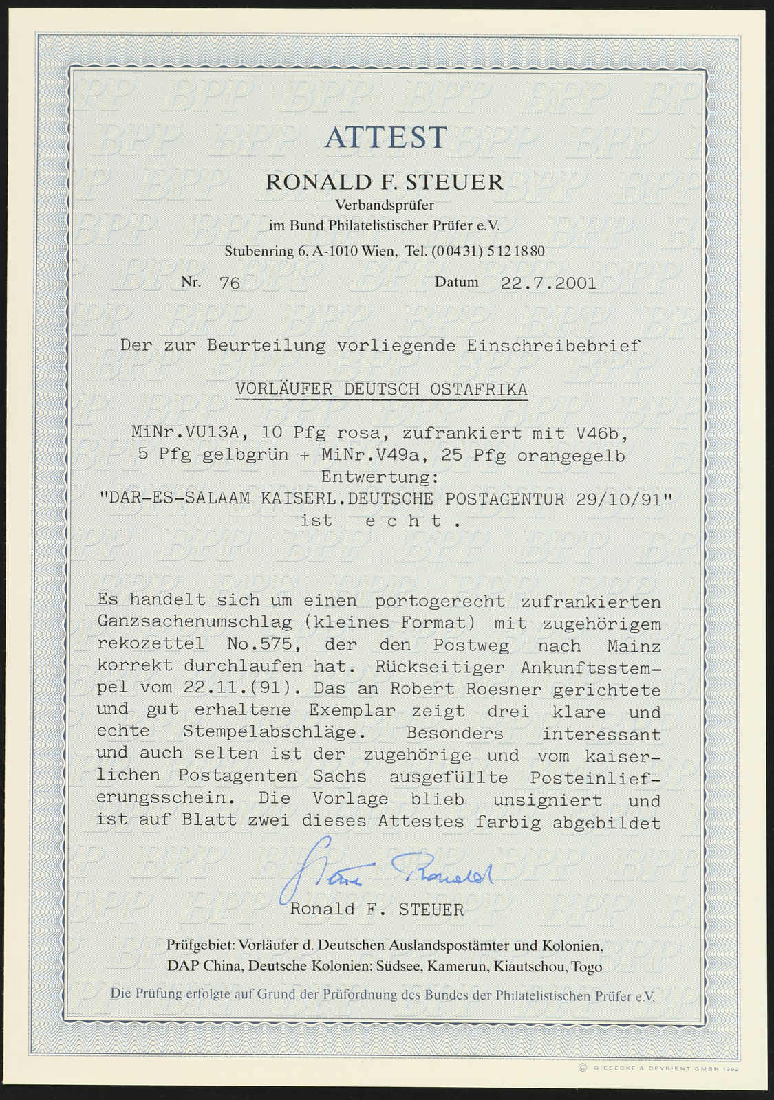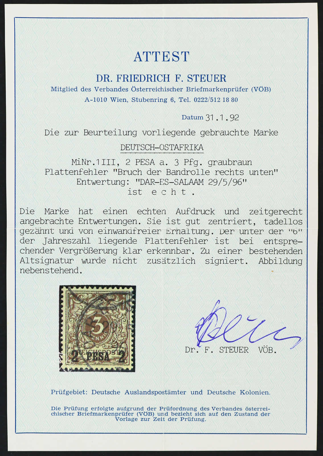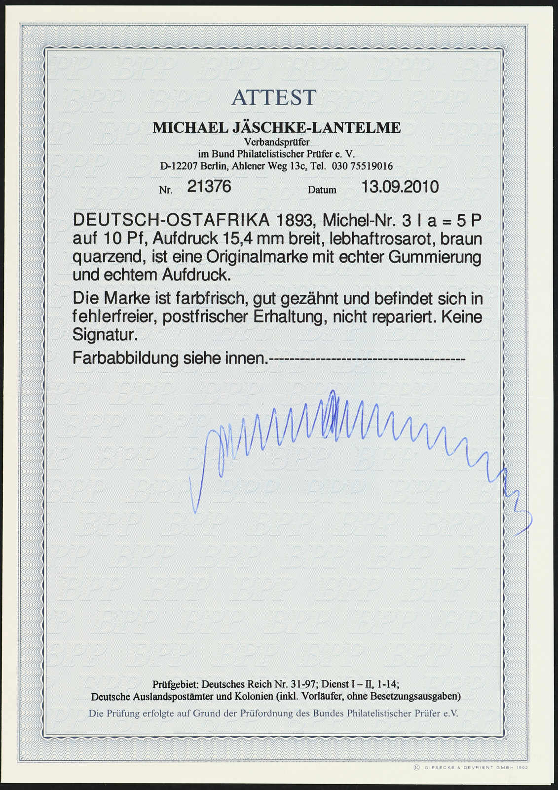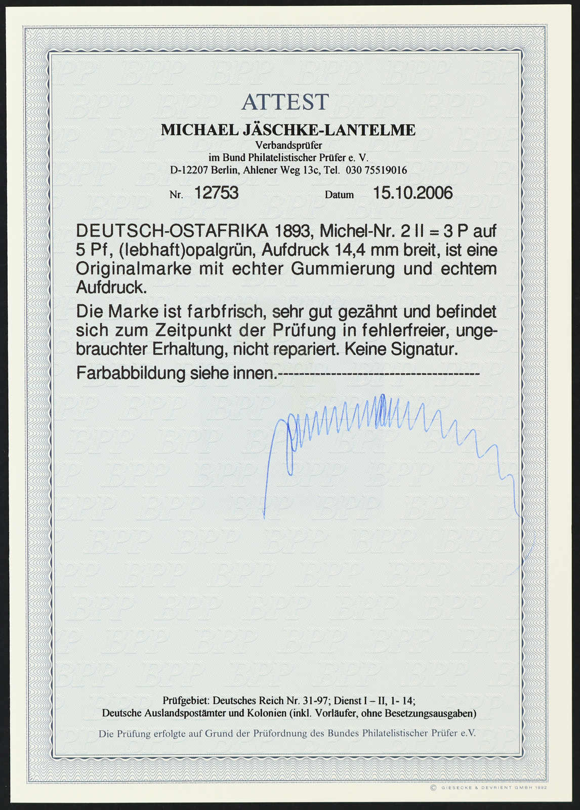 Get Market Data for [German East Africa Michel: 2 I PF V] Visual Pricing Guide Sample Census