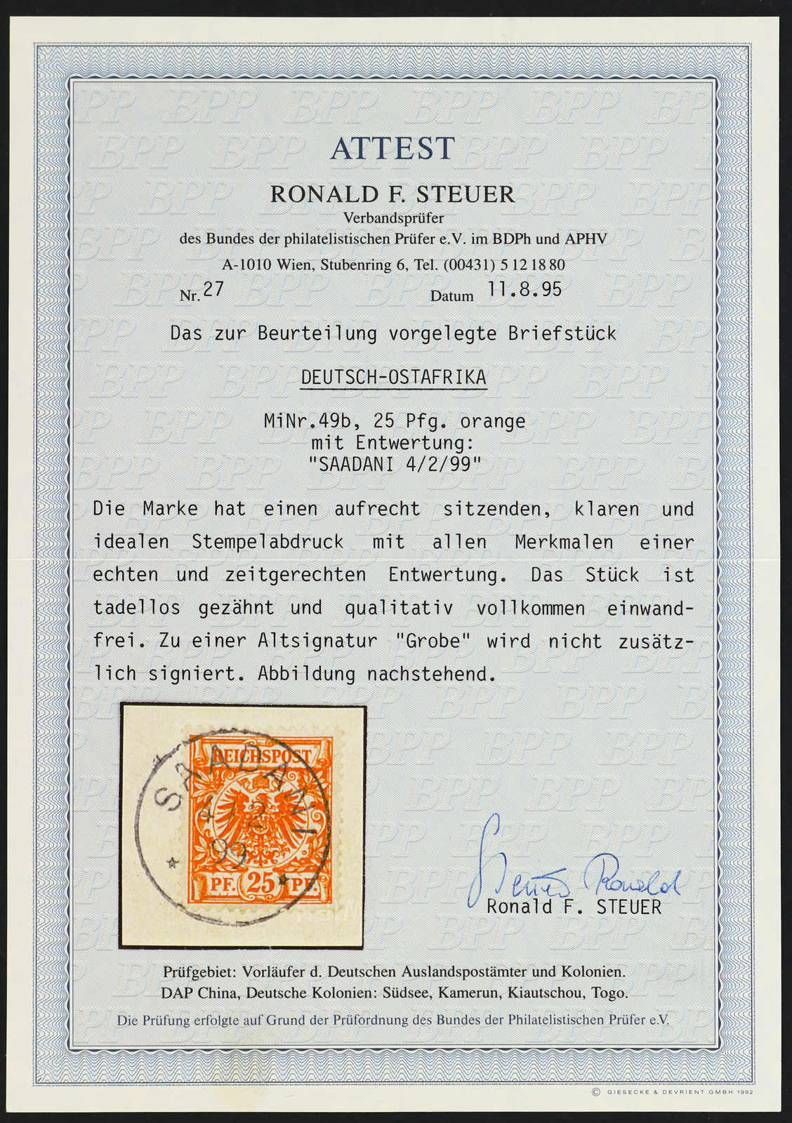 Get Market Data for [German East Africa Michel: VO 49 b] Visual Pricing Guide Sample Census
