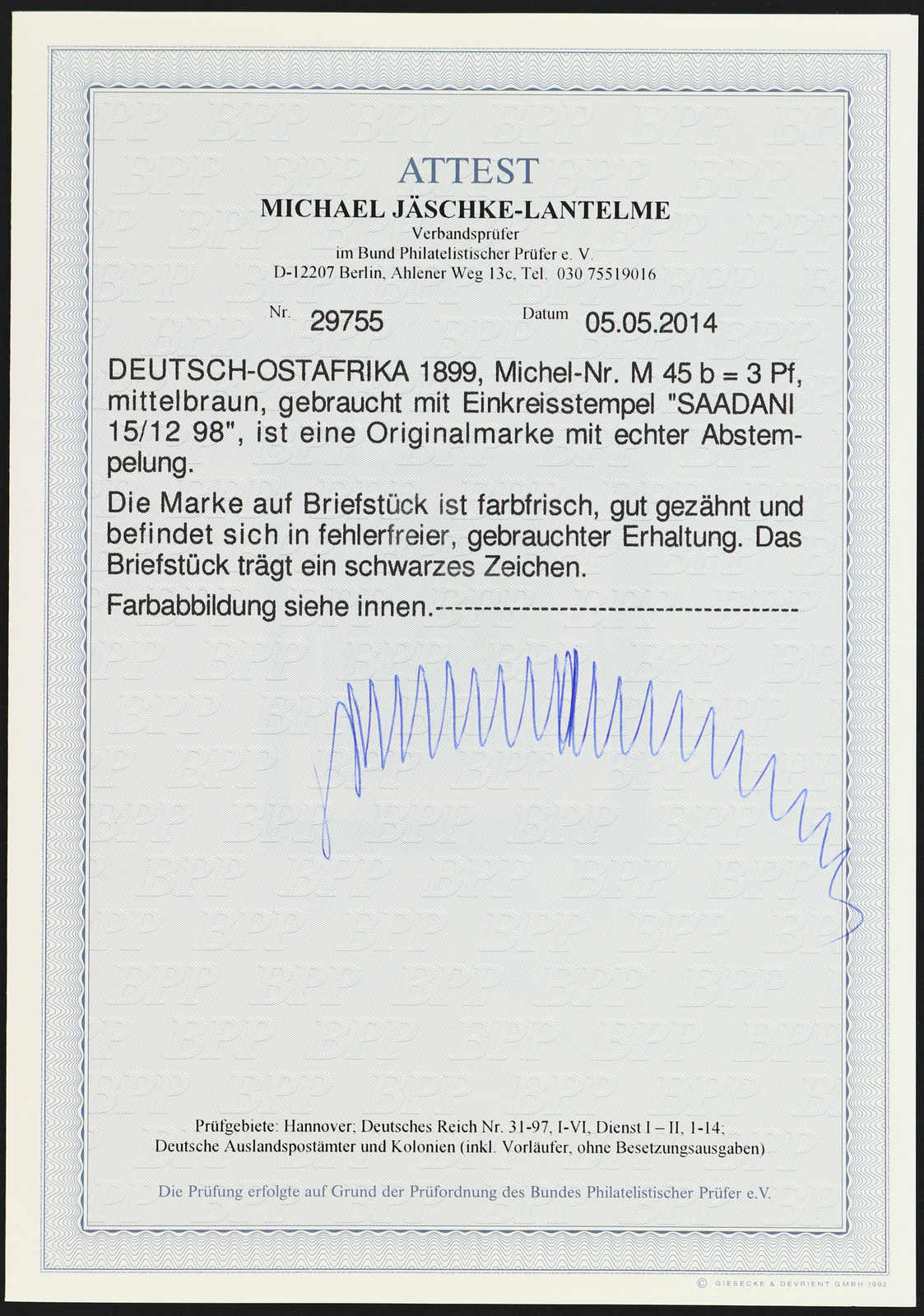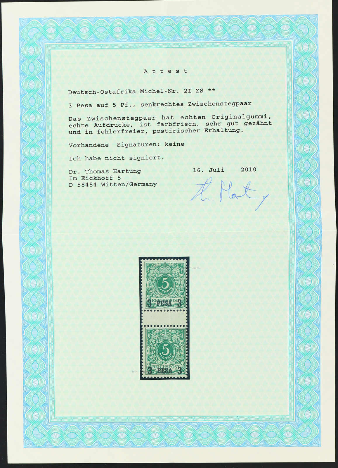 Get Market Data for [German East Africa Michel: 2 I ZS] Visual Pricing Guide Sample Census