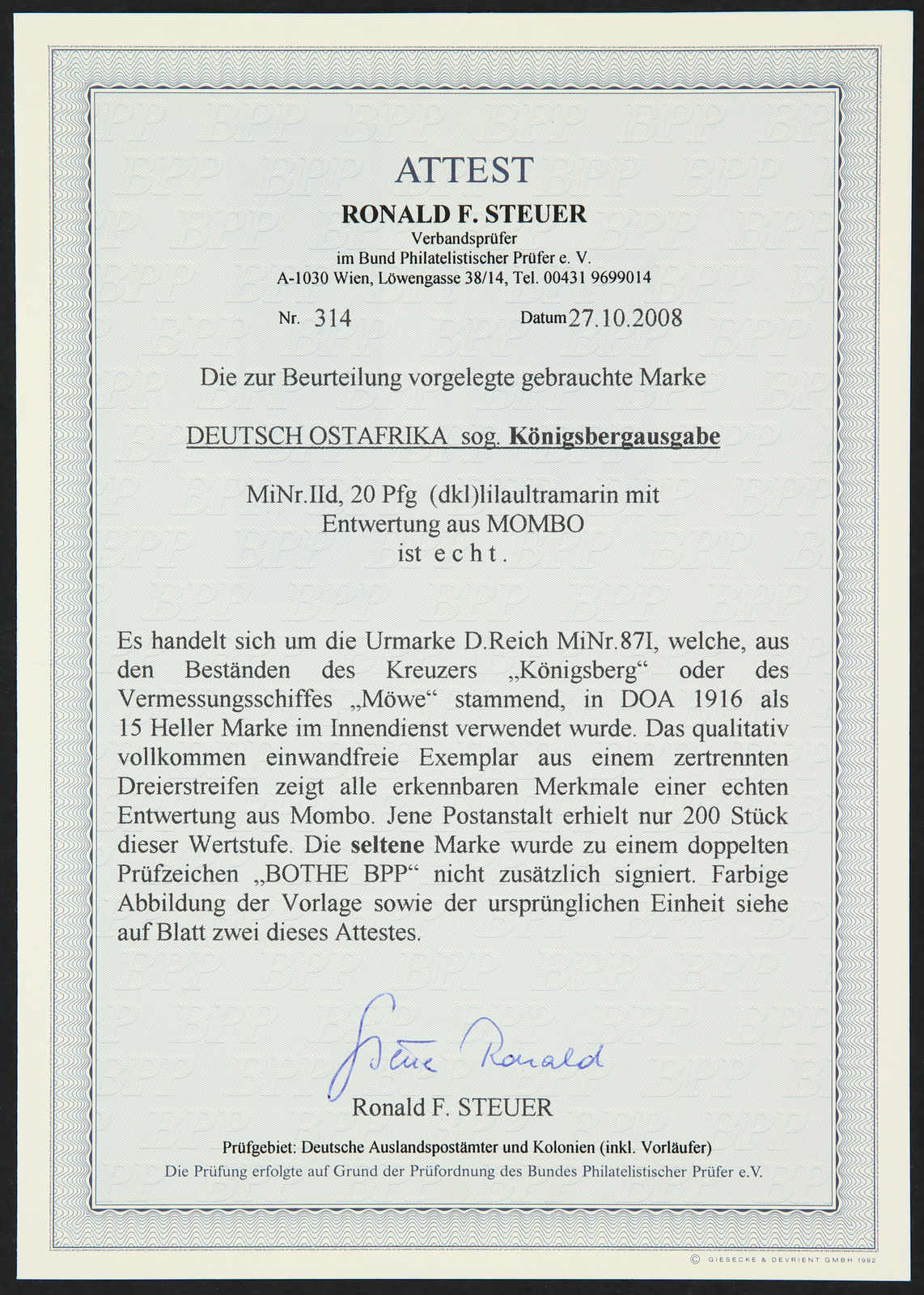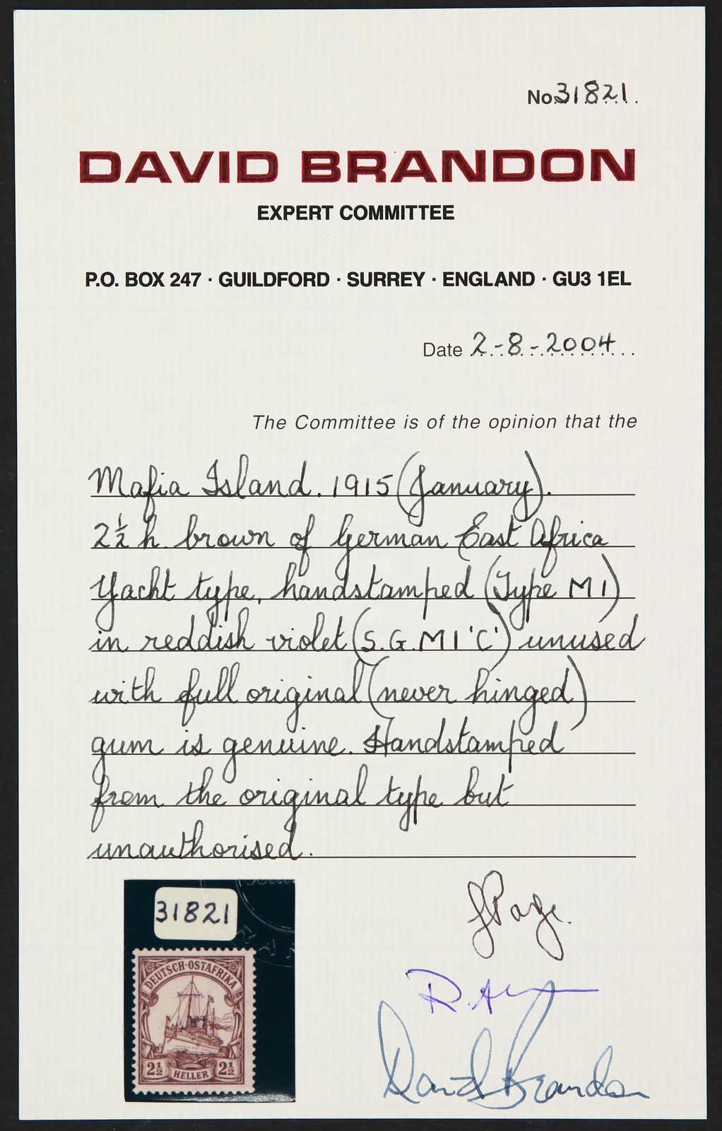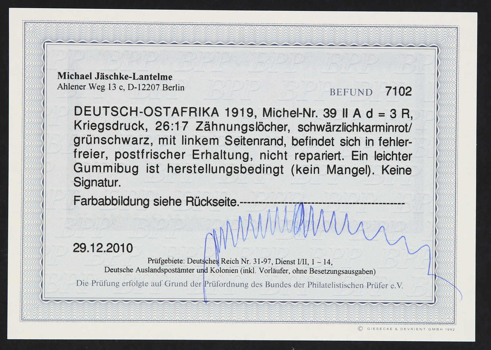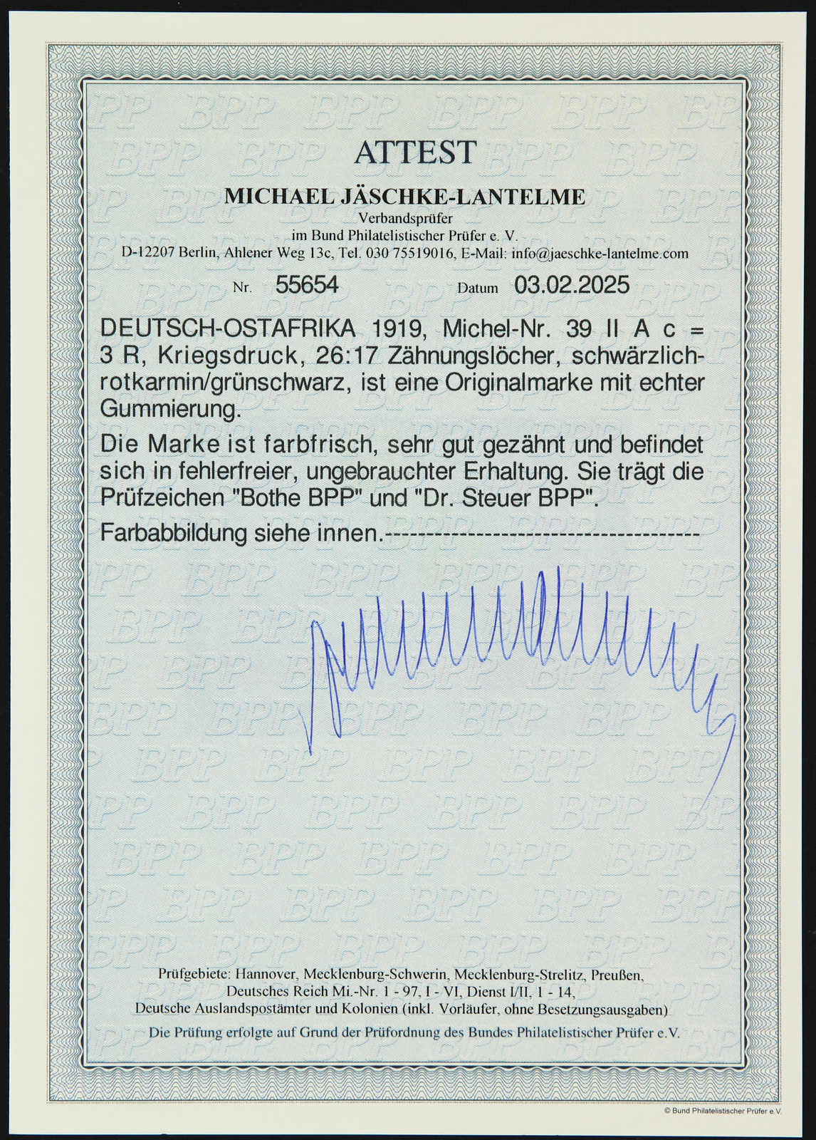 Get Market Data for [German East Africa Michel: 39 II A c] Visual Pricing Guide Sample Census