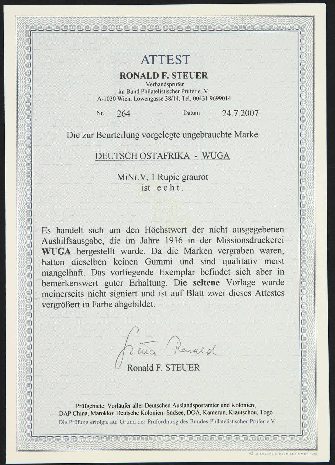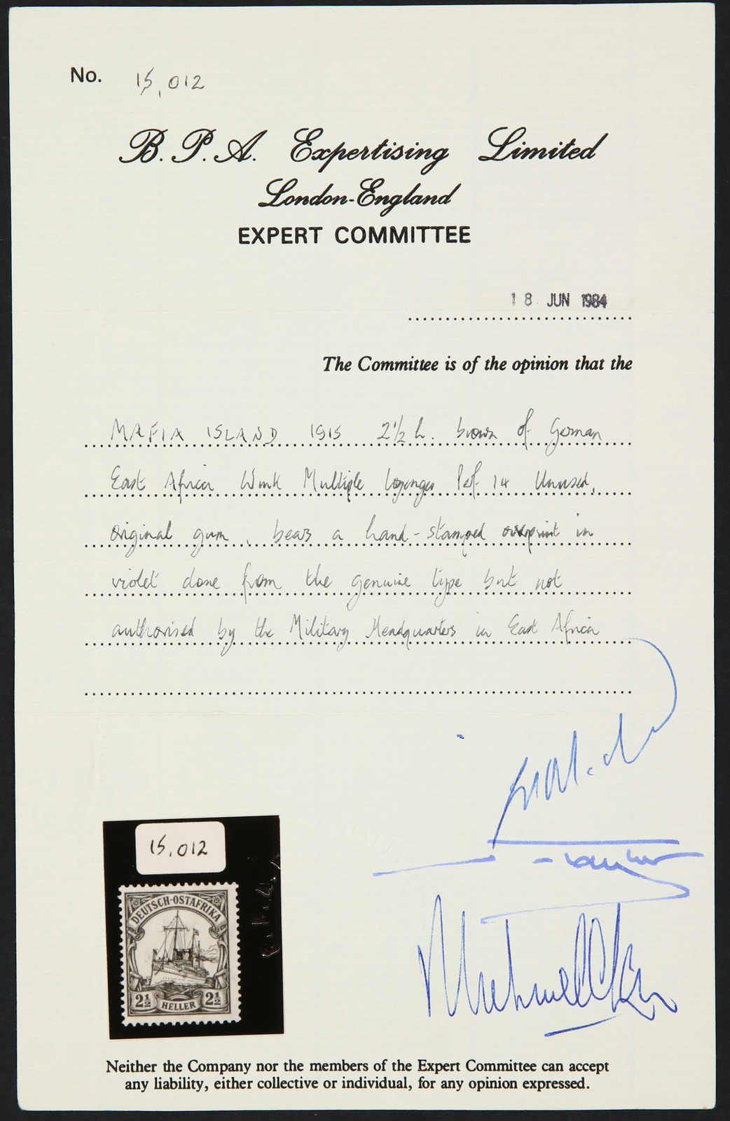 Get Market Data for [German East Africa Michel: PP 1] Visual Pricing Guide Sample Census