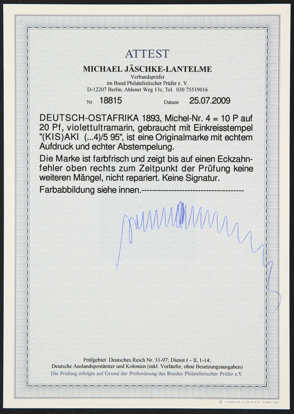 Get Market Data for [German East Africa Michel: 4] Visual Pricing Guide Sample Census