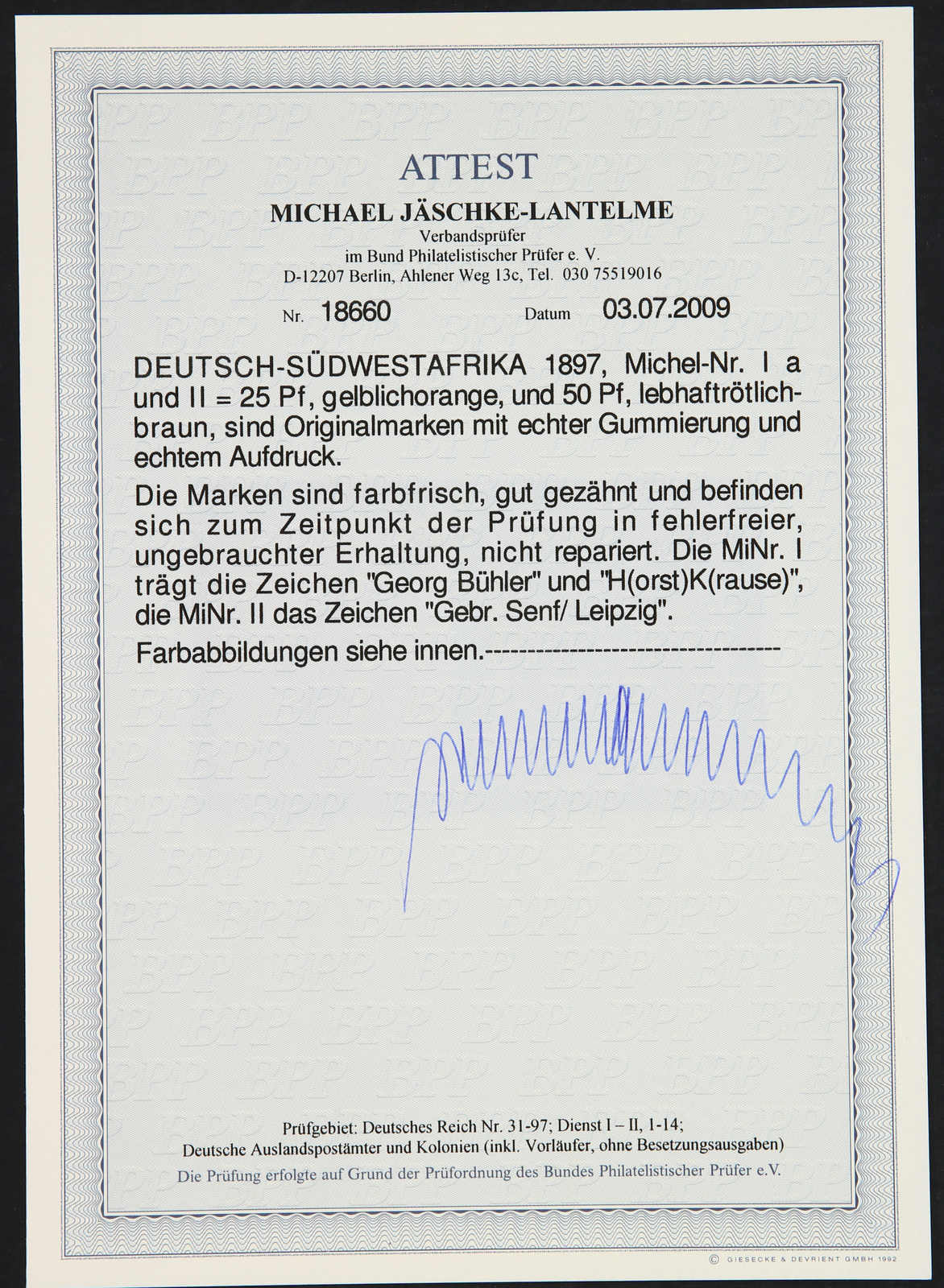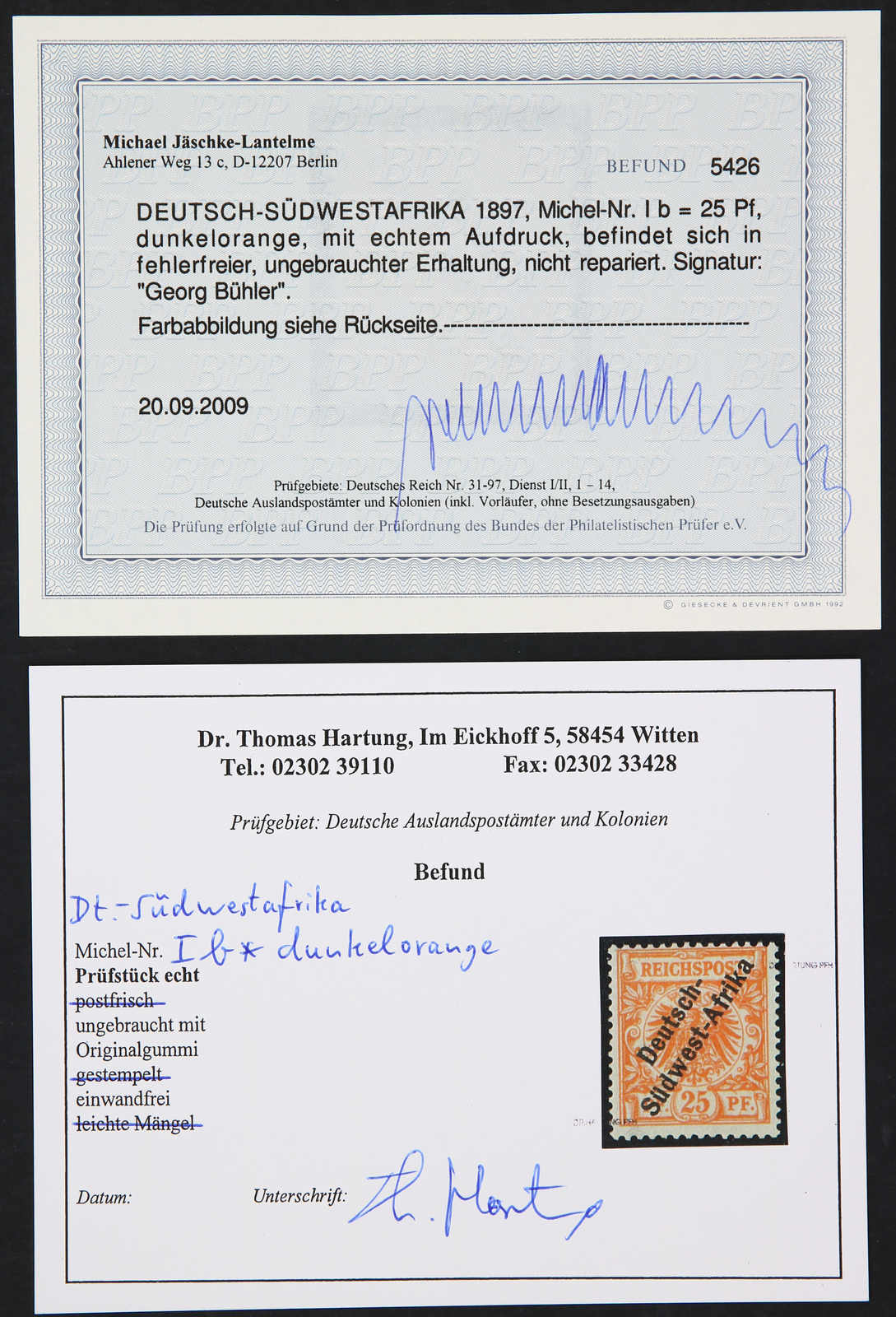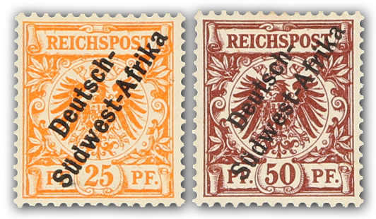 1897, 25 Pfg. gelblichorange und 50 Pfg. lebhaftrötlichbraun Aufdruckausgabe, ungebraucht, einwandfrei, signiert, Fotoattest Jäschke-Lantelme BPP (ME 560,-) (Image) (imagea)
