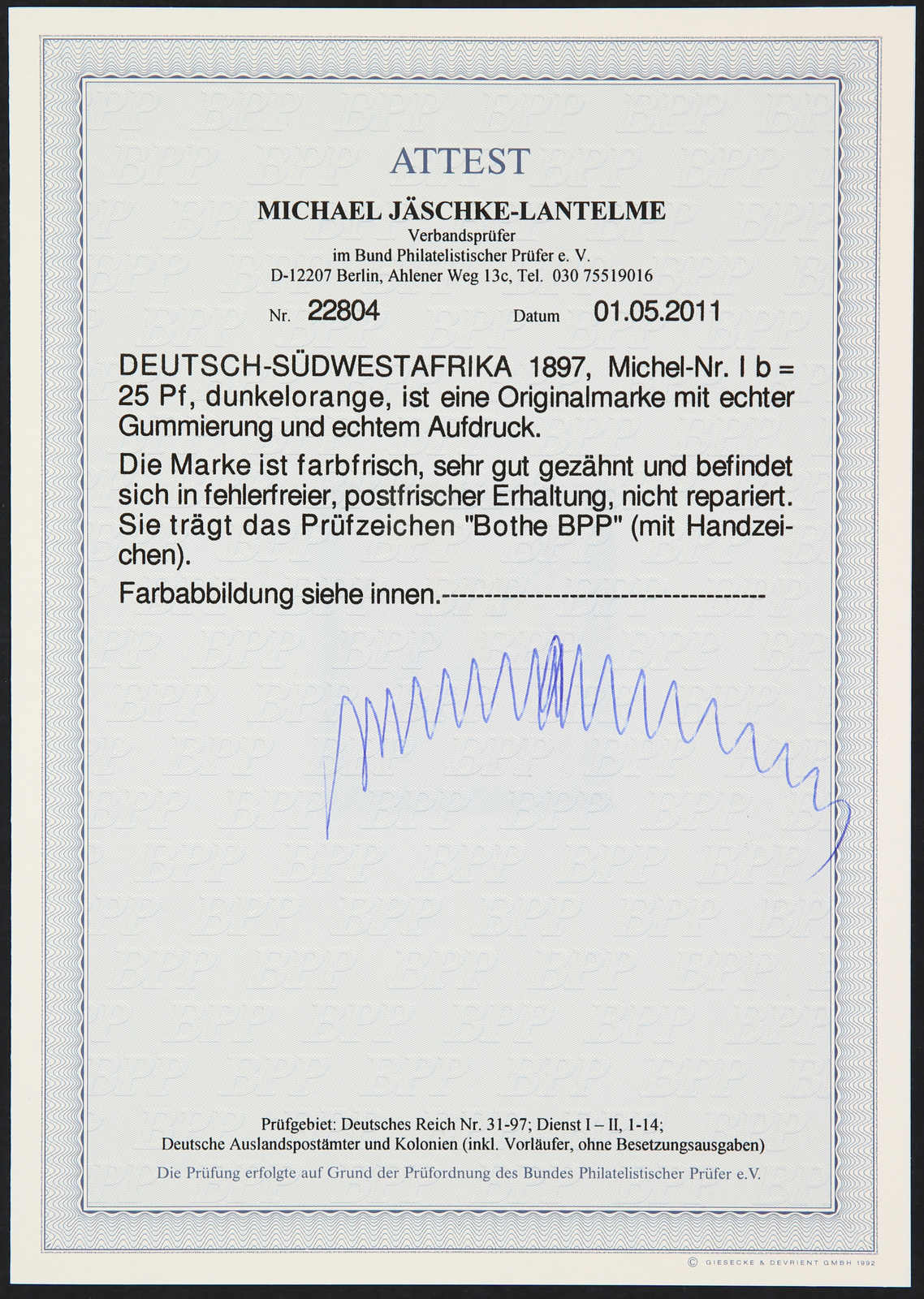 1897, 25 Pfg. Aufdruckausgabe dunkelorange, postfrisch, einwandfrei, geprüft Bothe BPP, Fotoattest Jäschke-Lantelme BPP (ME 850,-) (Image) (imagea)