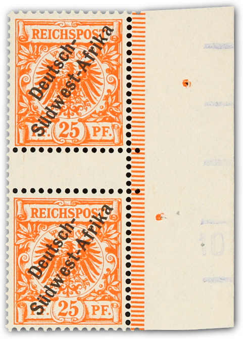 1897, 25 Pfg. Aufdruckausgabe orange, senkrechtes Zwischenstegpaar vom rechten Bogenrand, postfrisch, einwandfrei, unsigniert, Fotoattest Steuer VÖB (ME 2.800,-) (Image) (imagea)
