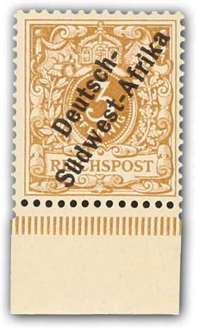 1897, 3 Pfg. Aufdruckausgabe hellocker, postfrisches Exemplar vom Unterrand, einwandfrei, signiert, Fotoattest Jäschke-Lantelme BPP (ME 900,-)