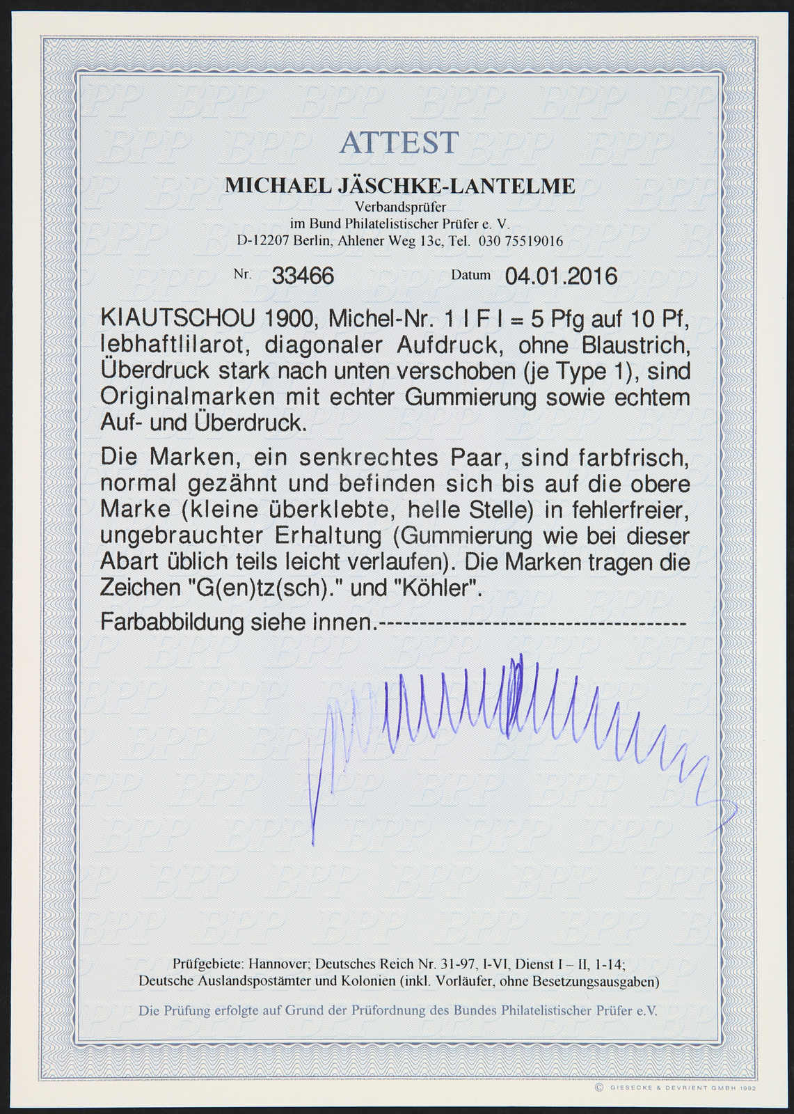 Get Market Data for [German Colonies Michel: 1 I , Type 1b] Visual Pricing Guide Sample Census