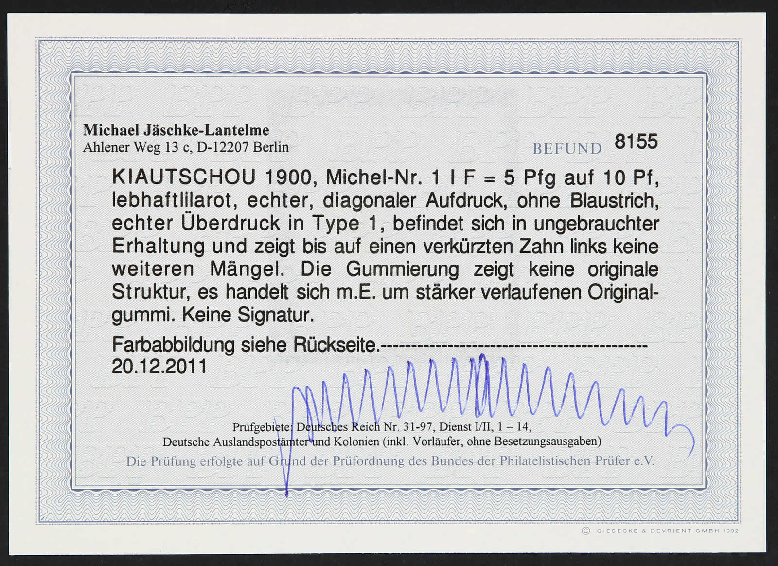 Get Market Data for [German Colonies Michel: 1 I F I] Visual Pricing Guide Sample Census