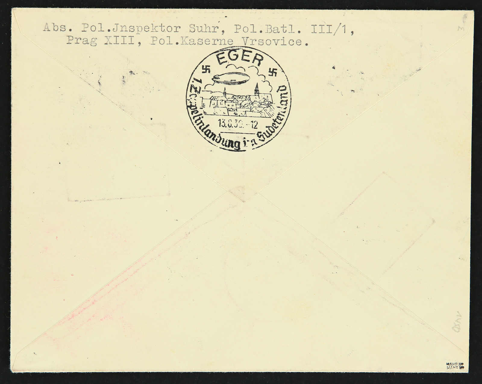 103 Brief MichelZeppelinundLuftp image1939, Egerfahrt, Zuleitungspost BÖHMEN & MÄHREN, seltener Brief mit Mischfrankatur Protektorat/CSR ab Prag 11.8.39 via Frankfurt 13.8. mit beiden Bestätigungsstempeln, adressiert nach Prag 31.7. (Image) (imagea)