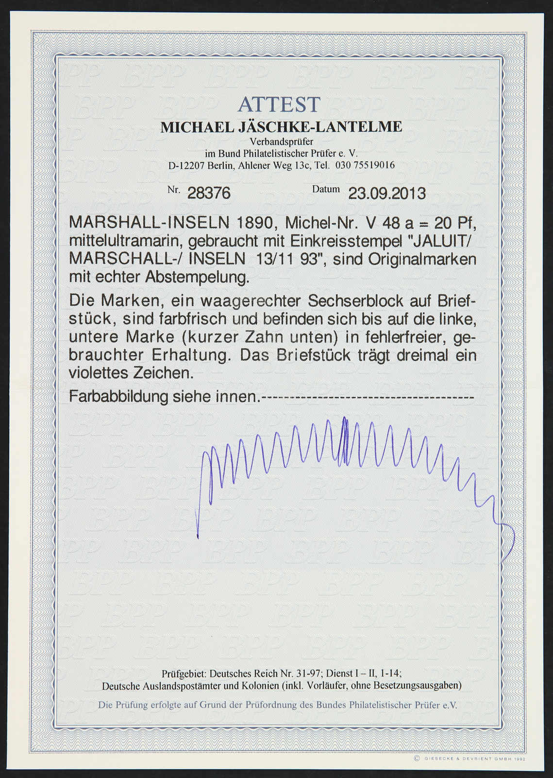 Get Market Data for [German Colonies Michel: V 48a (6)] Visual Pricing Guide Sample Census