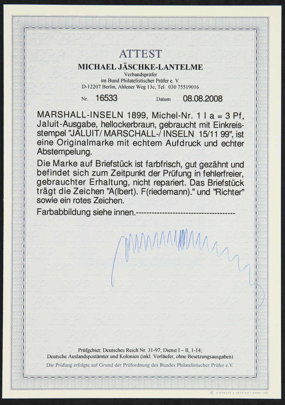 Get Market Data for [German Colonies Michel: 1 I a I] Visual Pricing Guide Sample Census