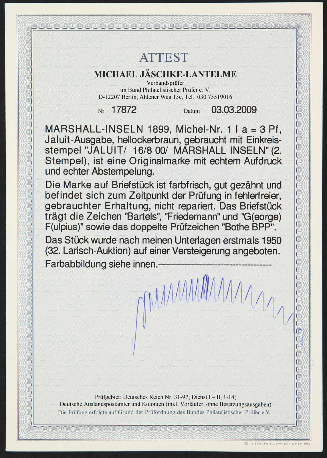 Get Market Data for [German Colonies Michel: 1 I a] Visual Pricing Guide Sample Census