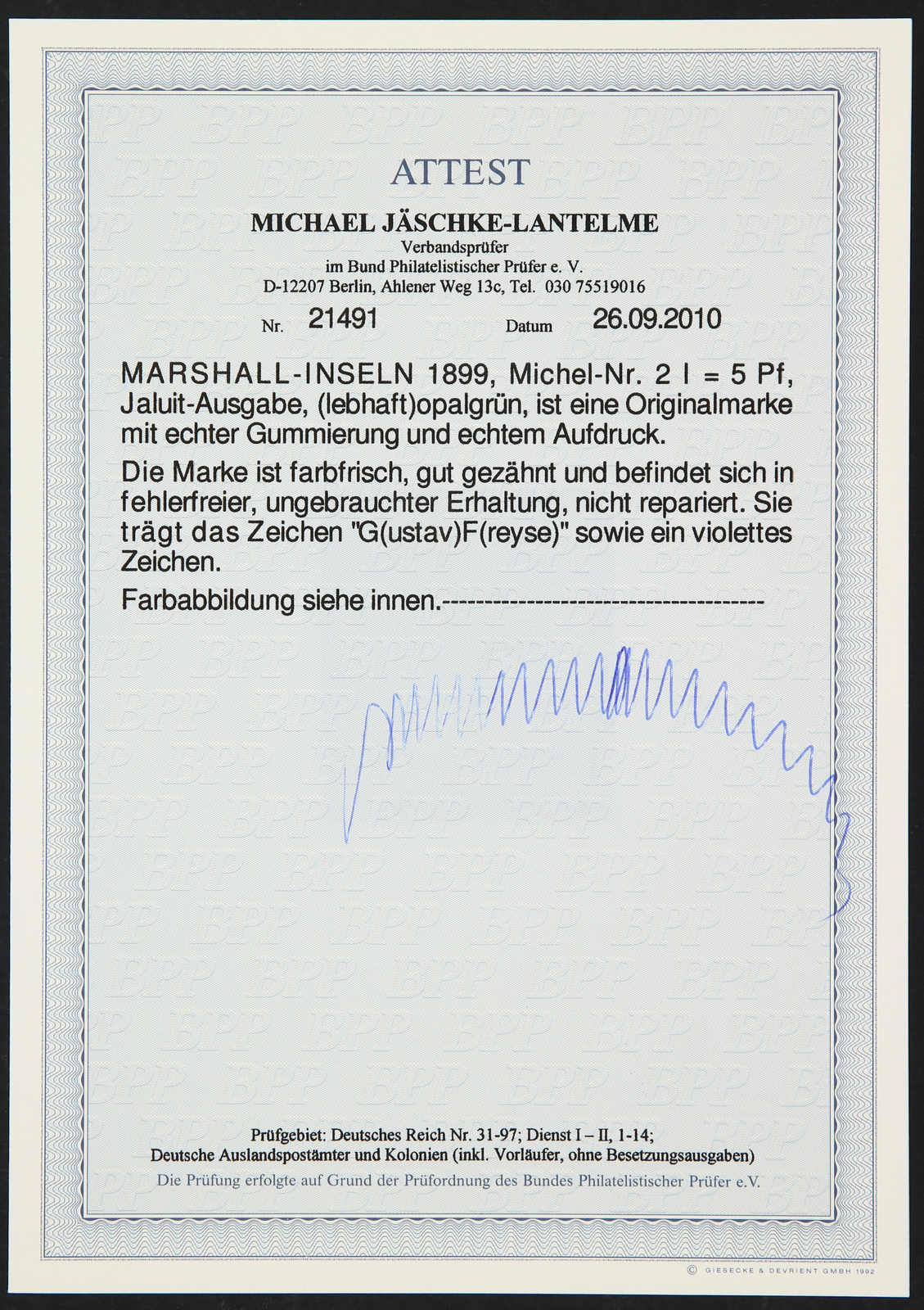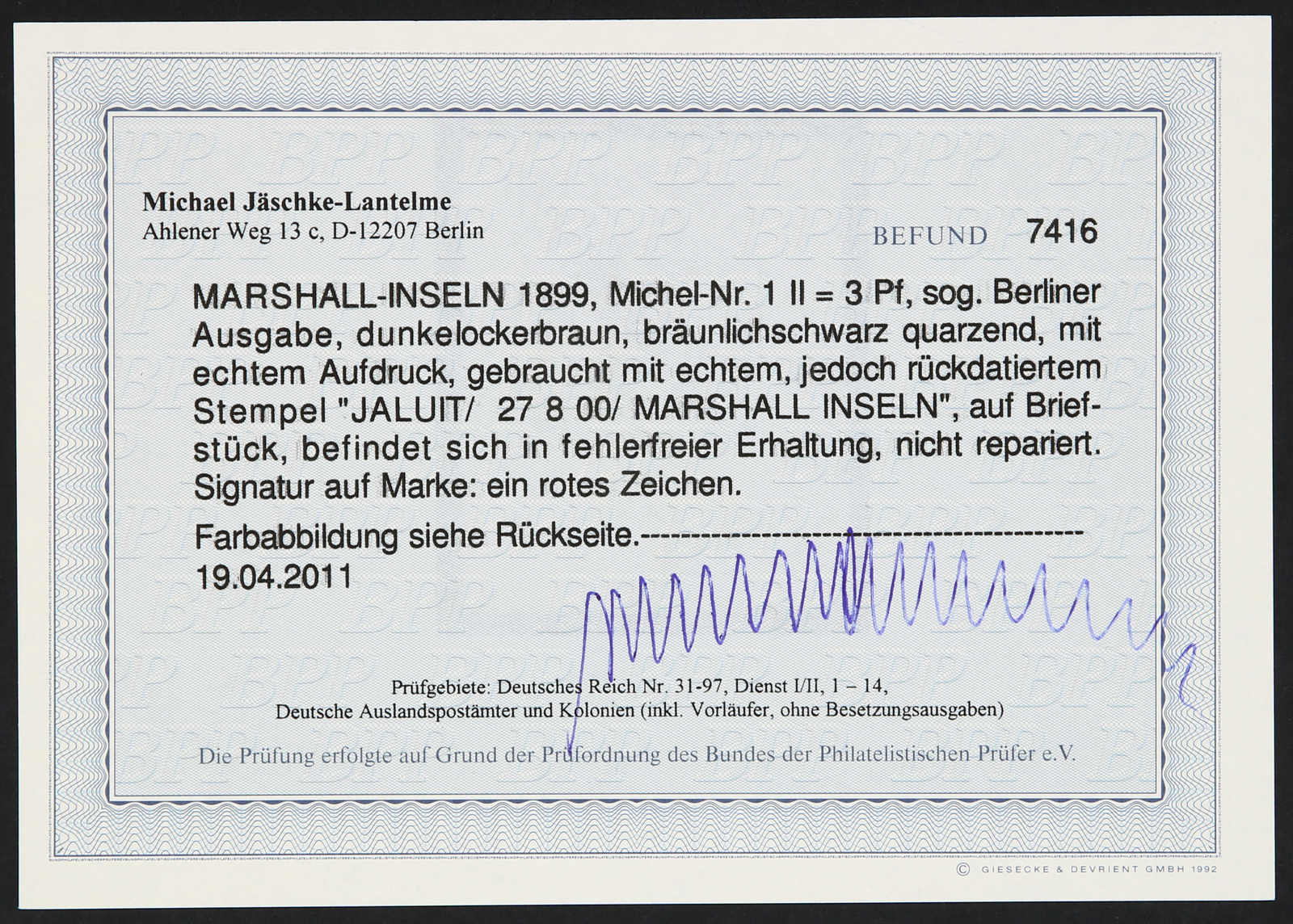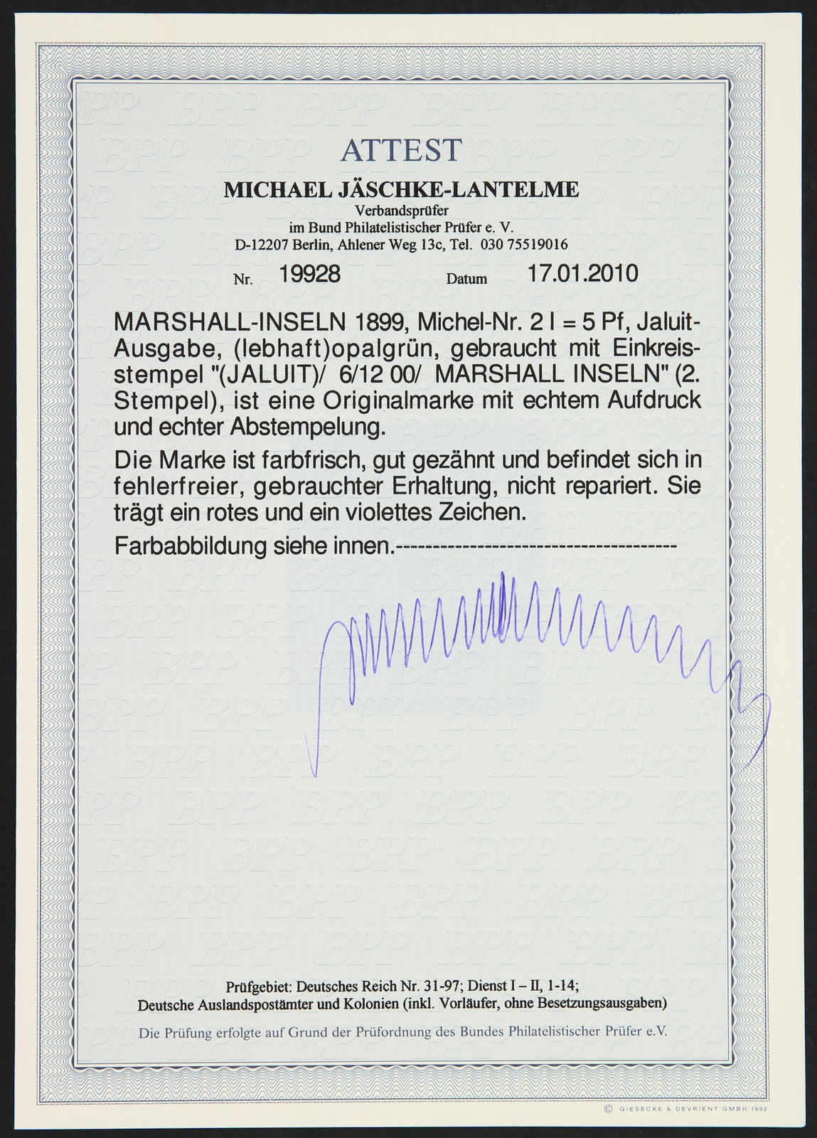 Get Market Data for [German Colonies Michel: 2 I, 11 a] Visual Pricing Guide Sample Census
