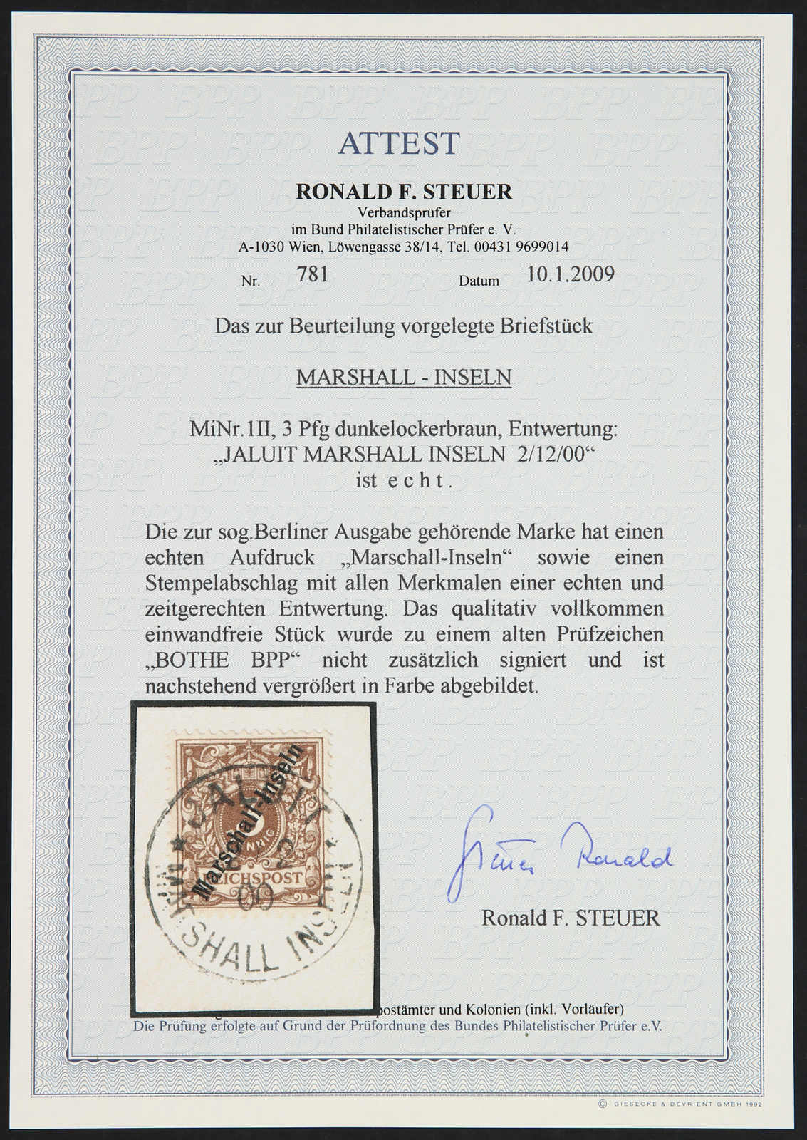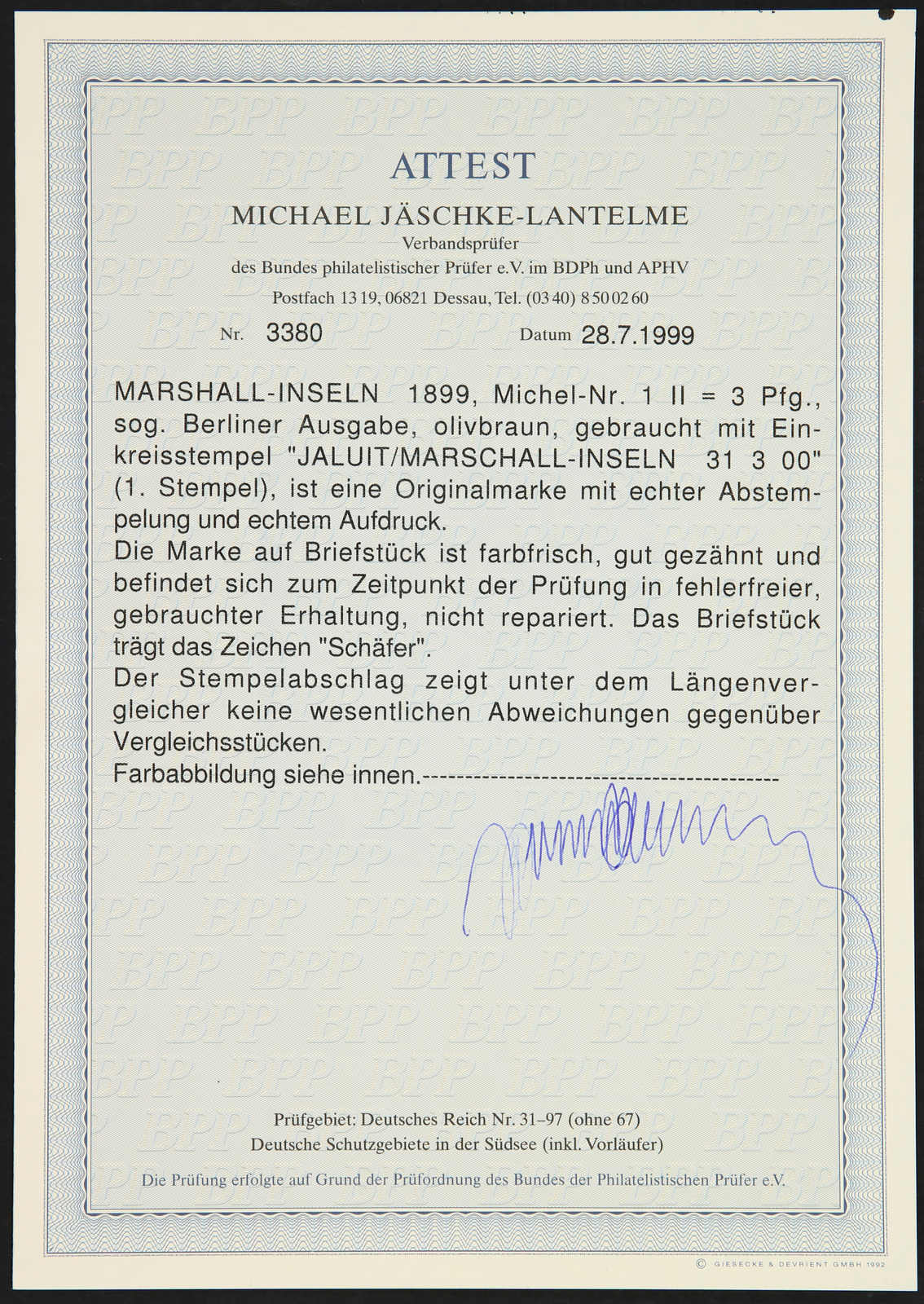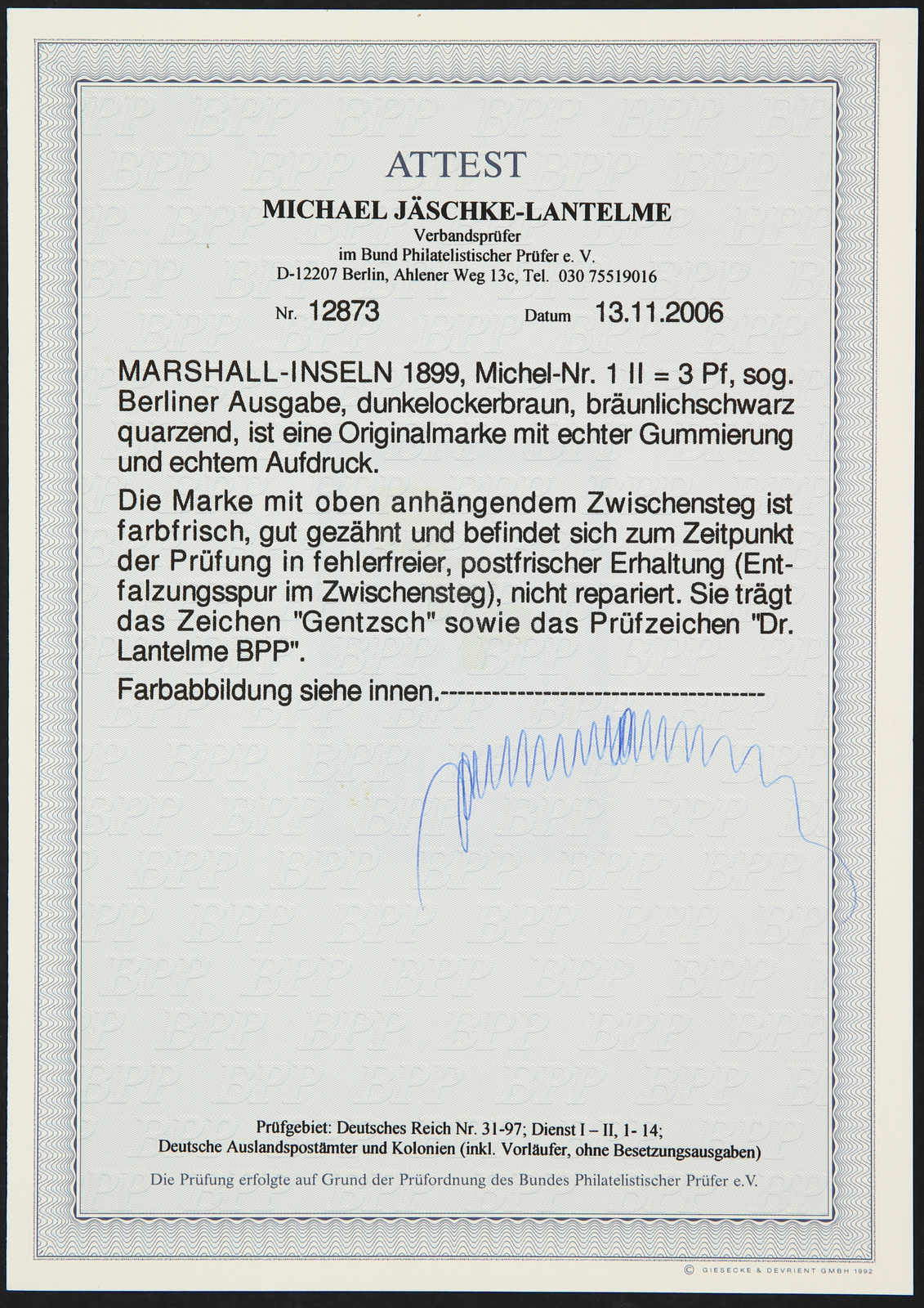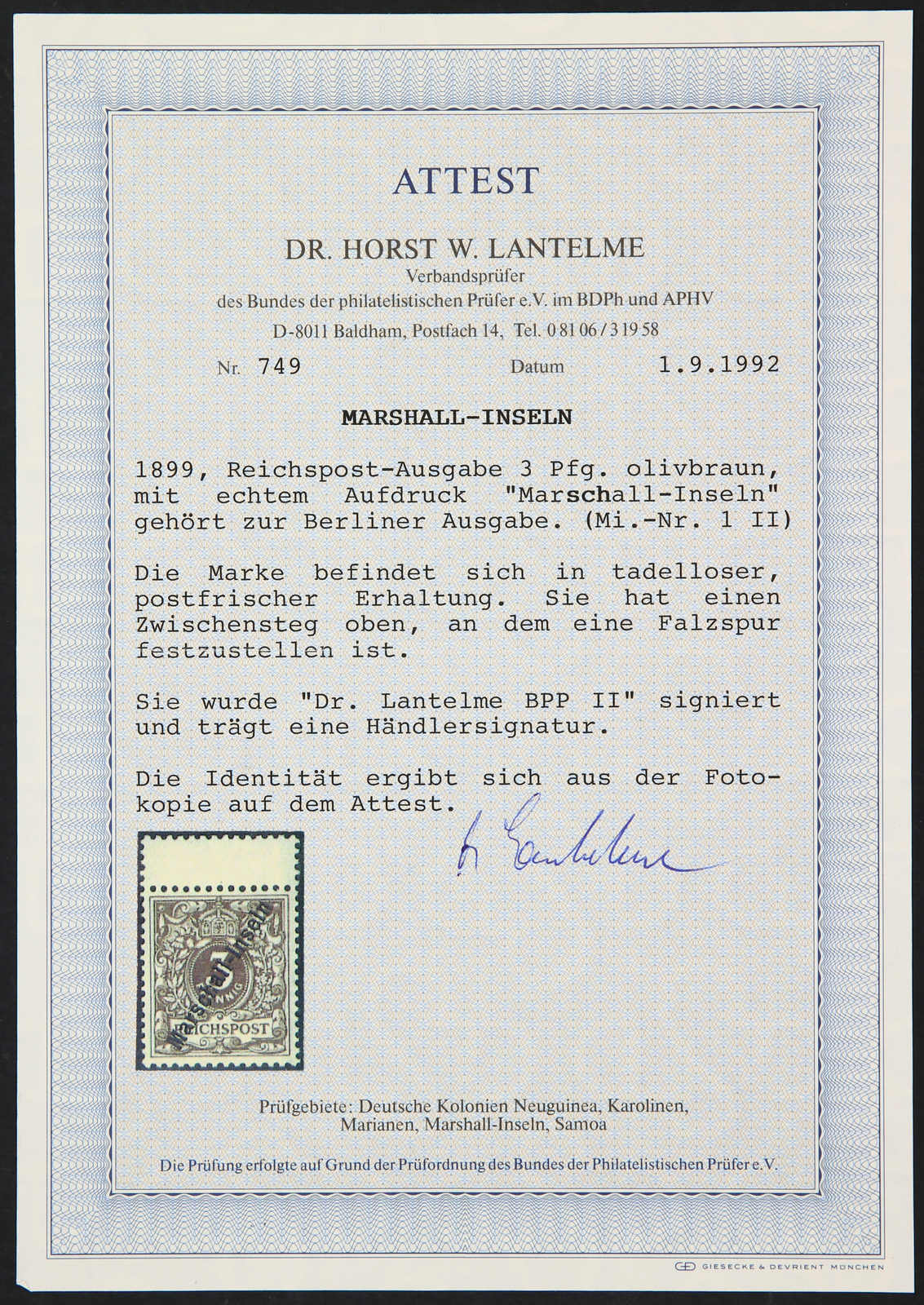 Get Market Data for [German Colonies Michel: 1 II a PF I] Visual Pricing Guide Sample Census