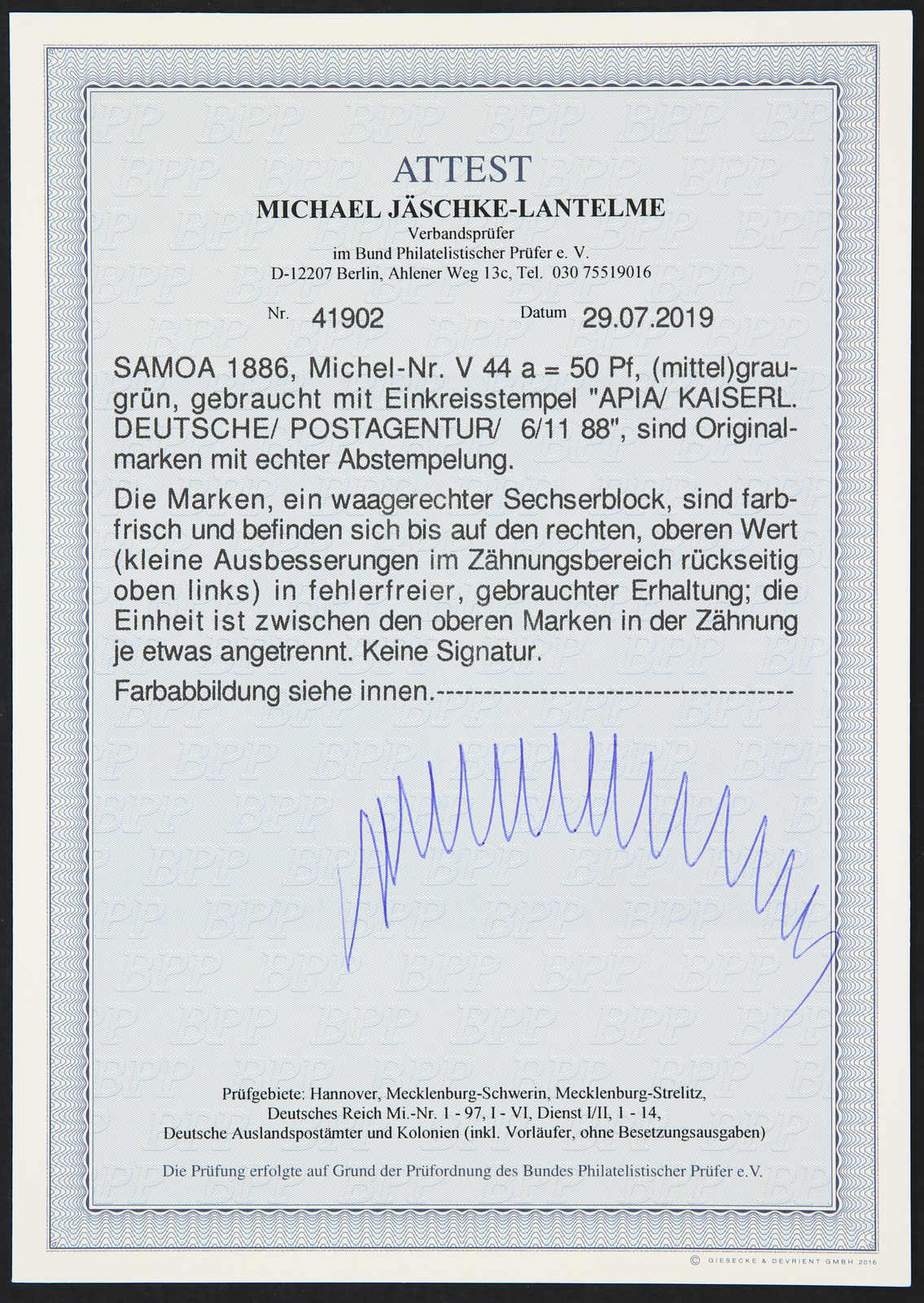 Get Market Data for [German Colonies Michel: V 44 a (6)] Visual Pricing Guide Sample Census