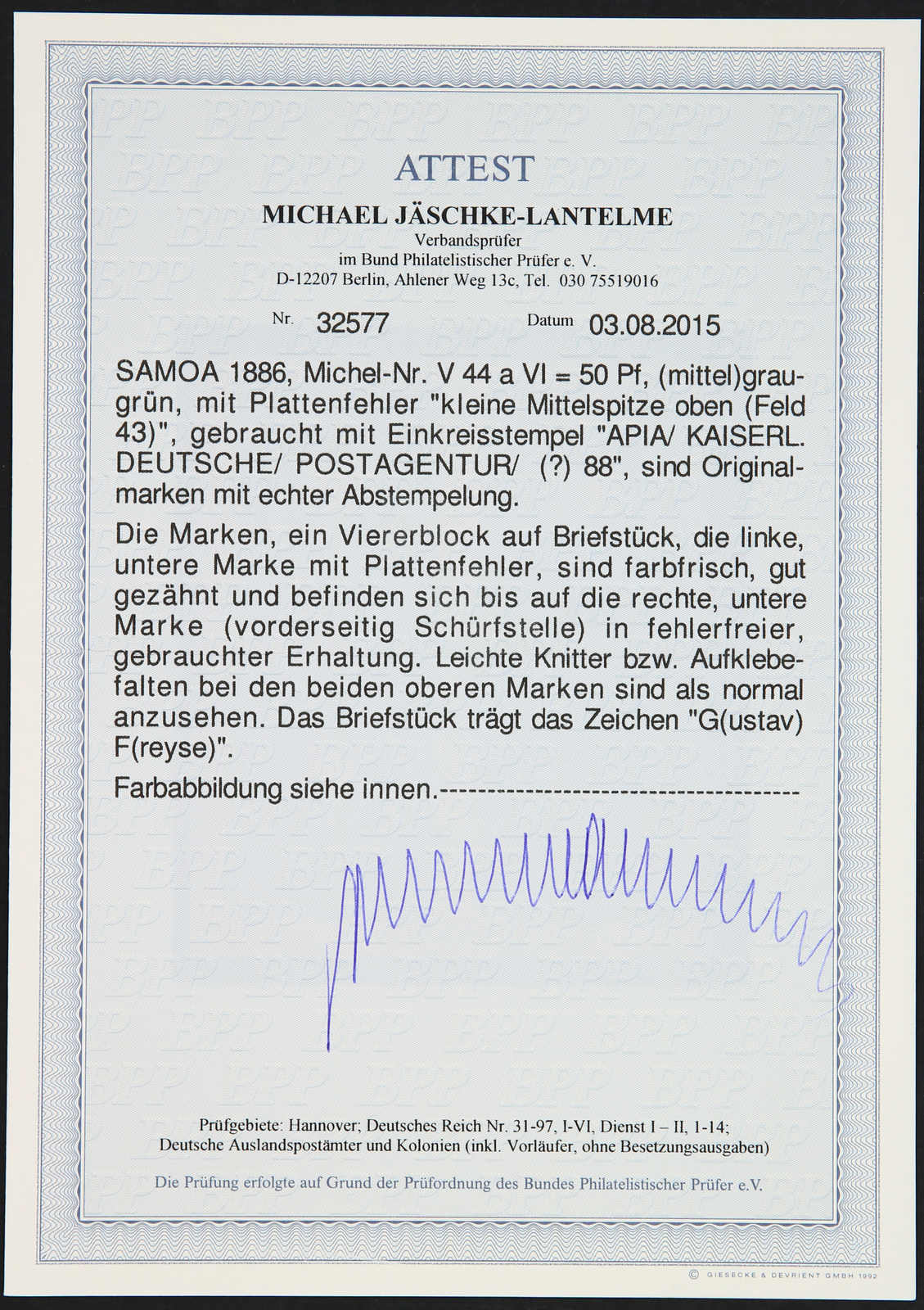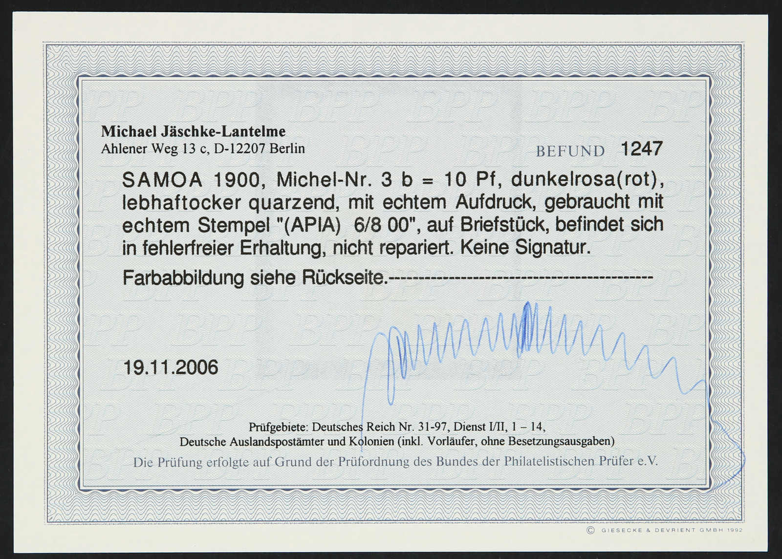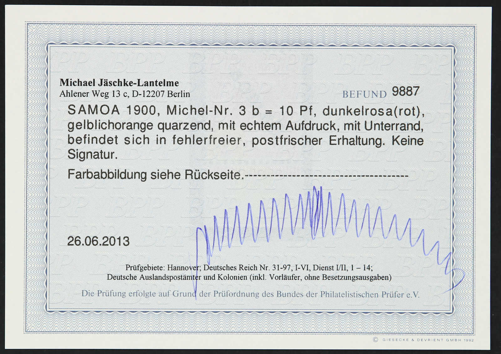 Get Market Data for [German Colonies Michel: 27 A II] Visual Pricing Guide Sample Census