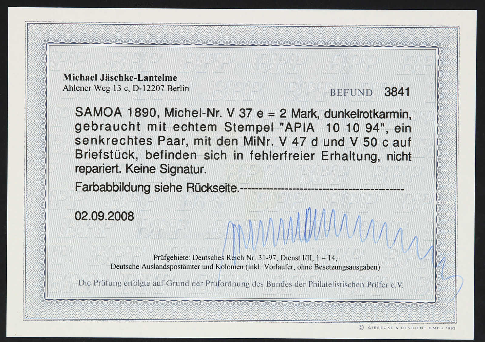 Get Market Data for [German Colonies Michel: V 37e (2), V 47d] Visual Pricing Guide Sample Census