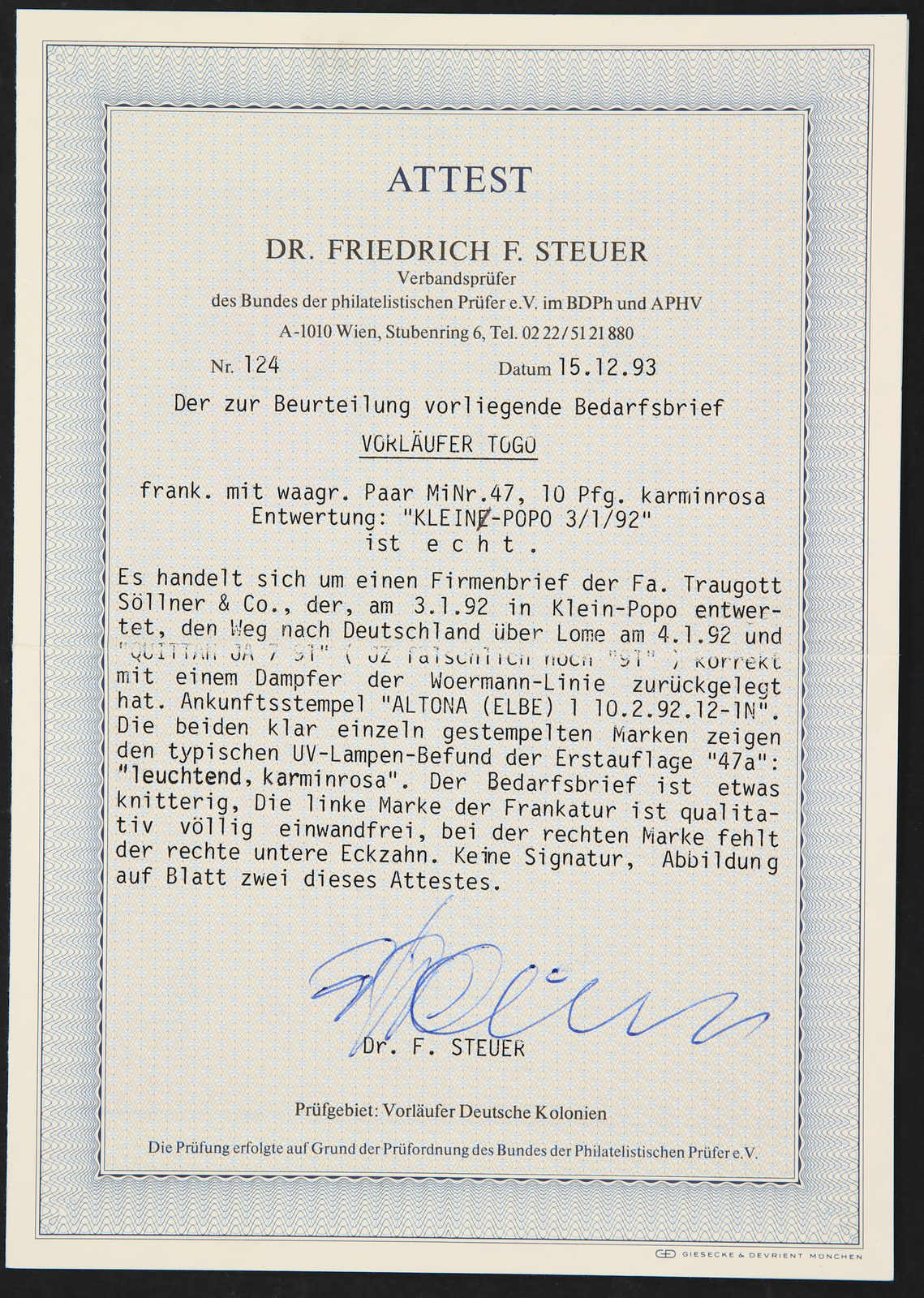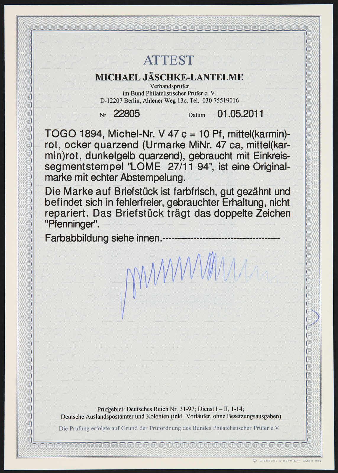 Get Market Data for [German Colonies Michel: V 47 a] Visual Pricing Guide Sample Census