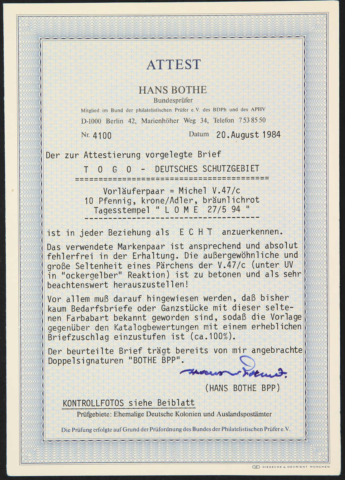 Get Market Data for [German Colonies Michel: V 47 b (2)] Visual Pricing Guide Sample Census