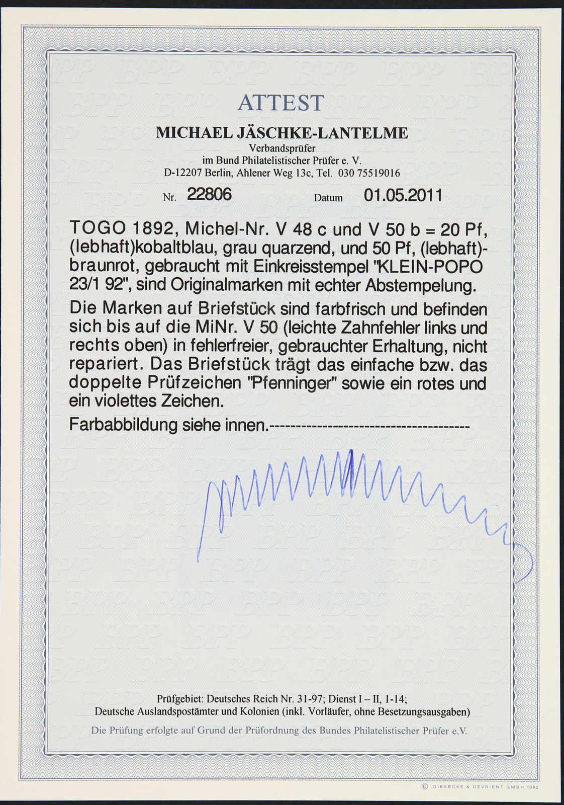 Get Market Data for [German Colonies Michel: V 48c, V 50b] Visual Pricing Guide Sample Census