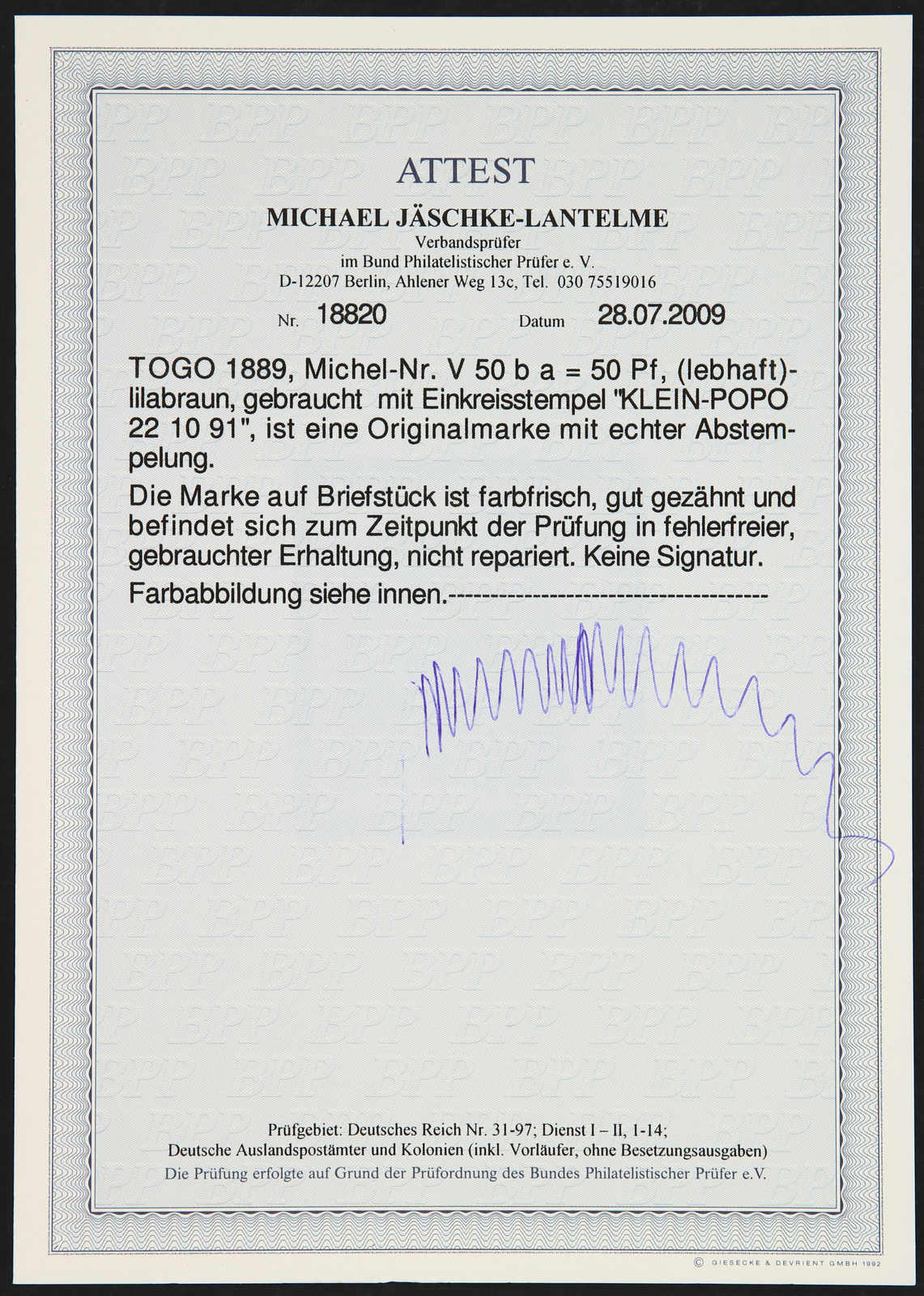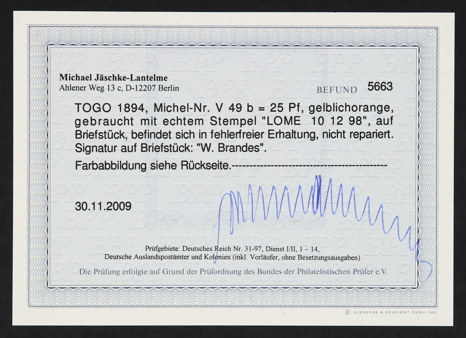 Get Market Data for [German Colonies Michel: V 49 b] Visual Pricing Guide Sample Census
