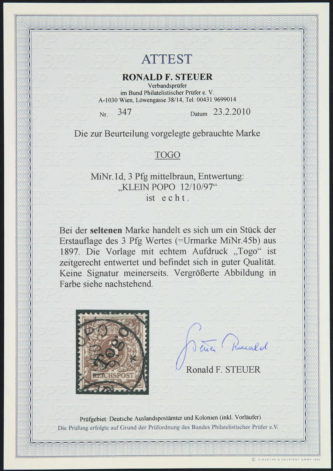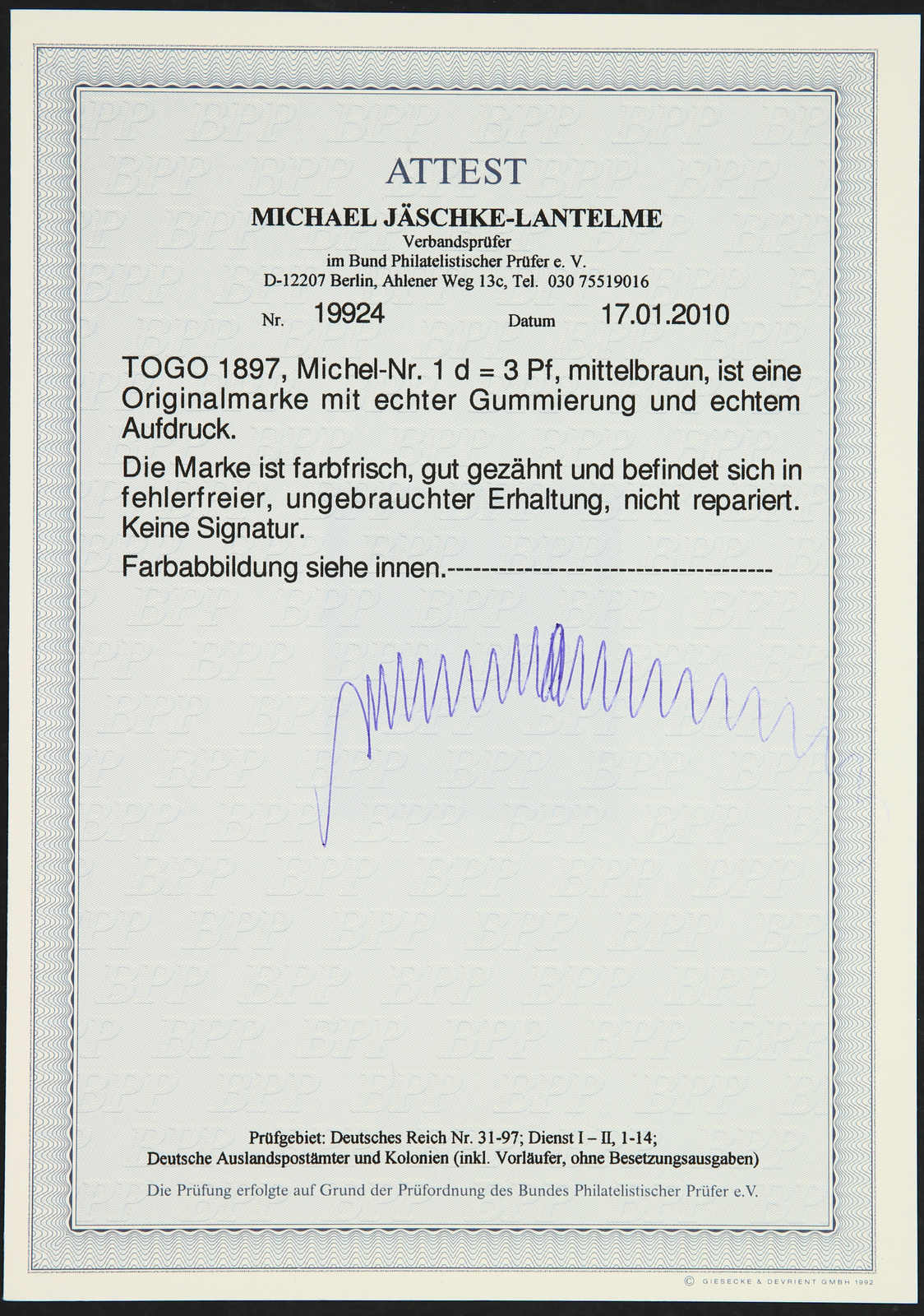 Get Market Data for [German Colonies Michel: 1 d] Visual Pricing Guide Sample Census