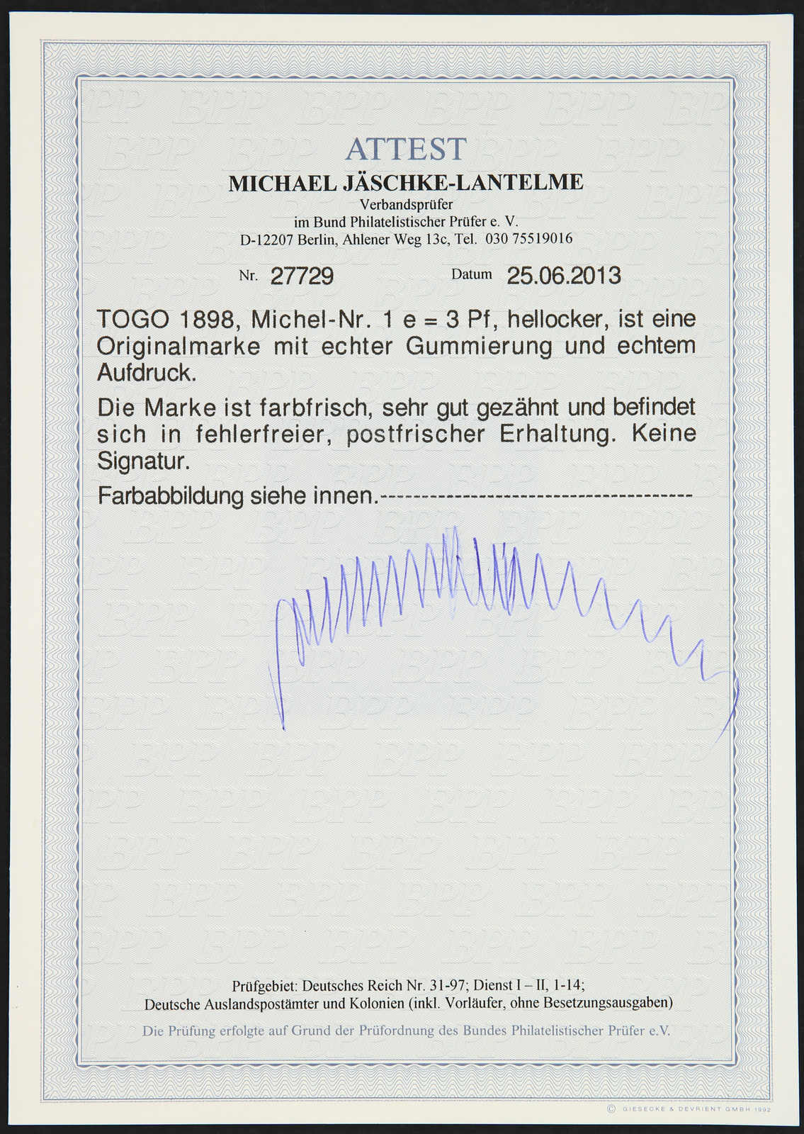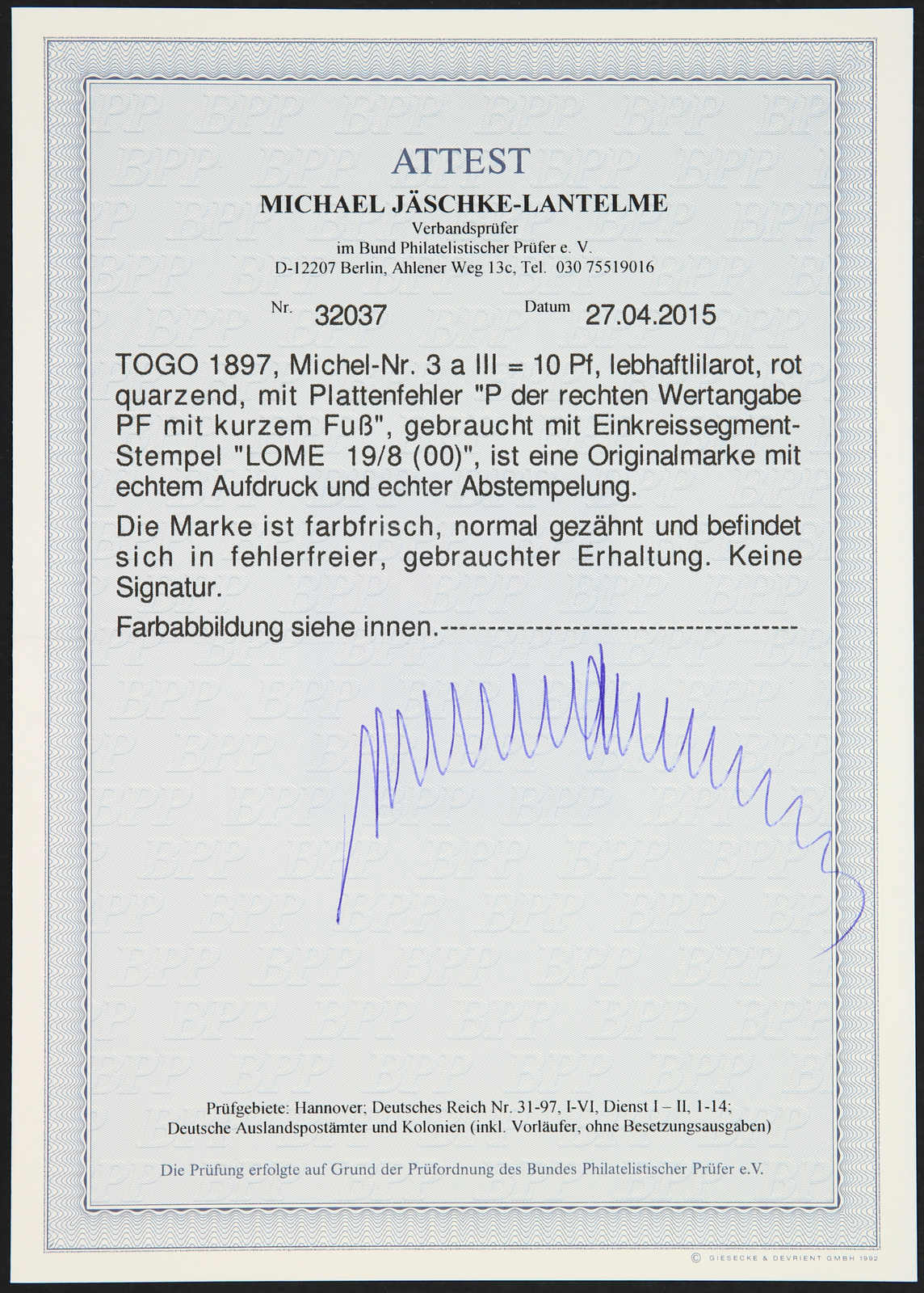 Get Market Data for [German Colonies Michel: 3 a III] Visual Pricing Guide Sample Census