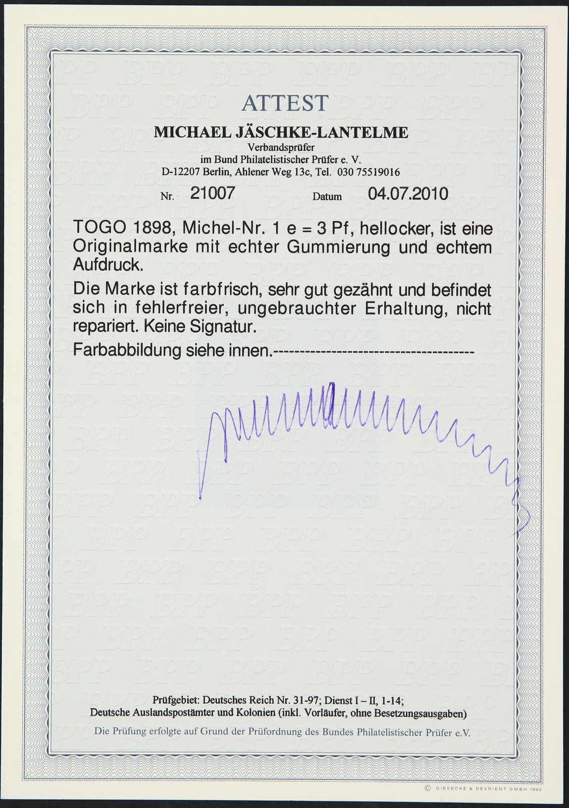 Get Market Data for [German Colonies Michel: 1 e] Visual Pricing Guide Sample Census