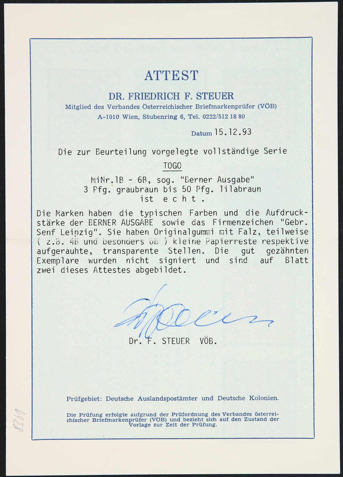 Get Market Data for [German Colonies Michel: 1-6 B] Visual Pricing Guide Sample Census