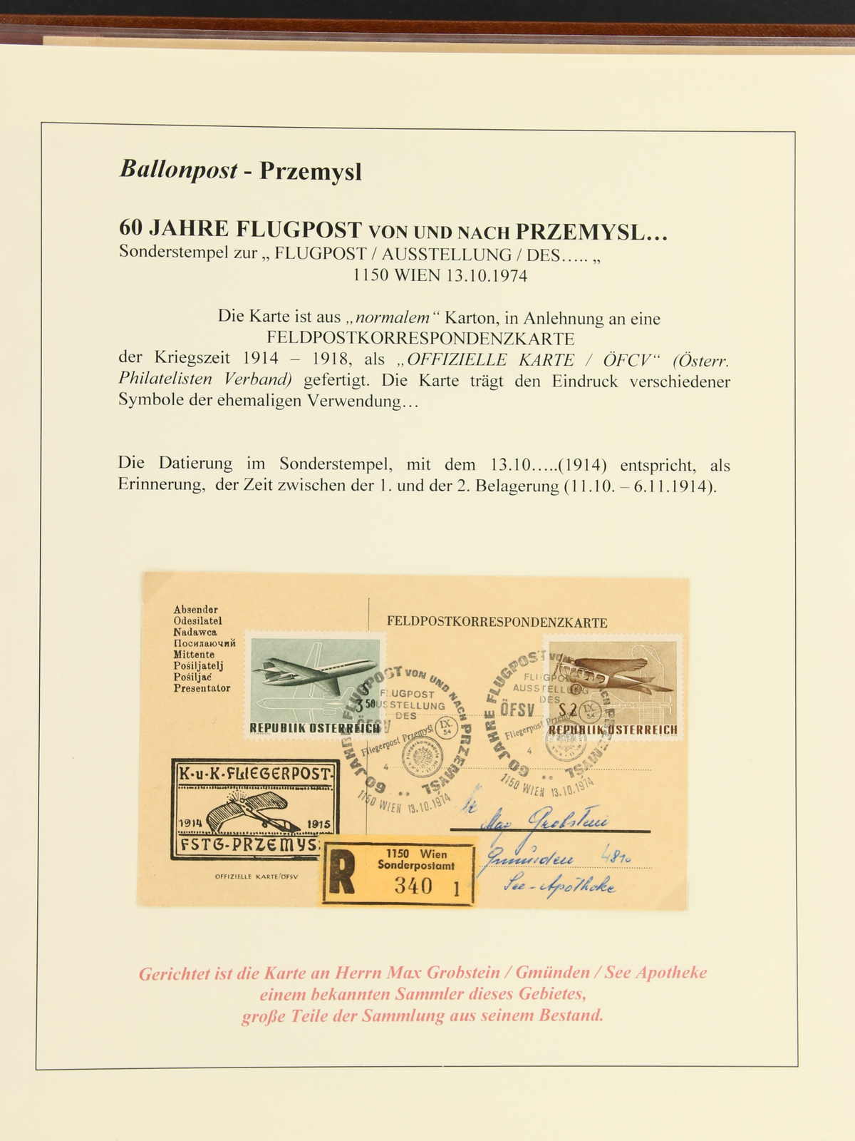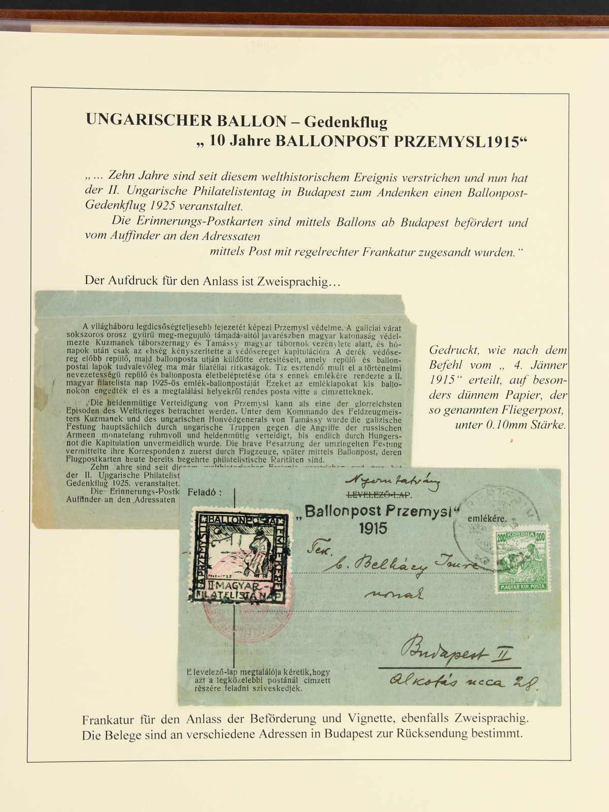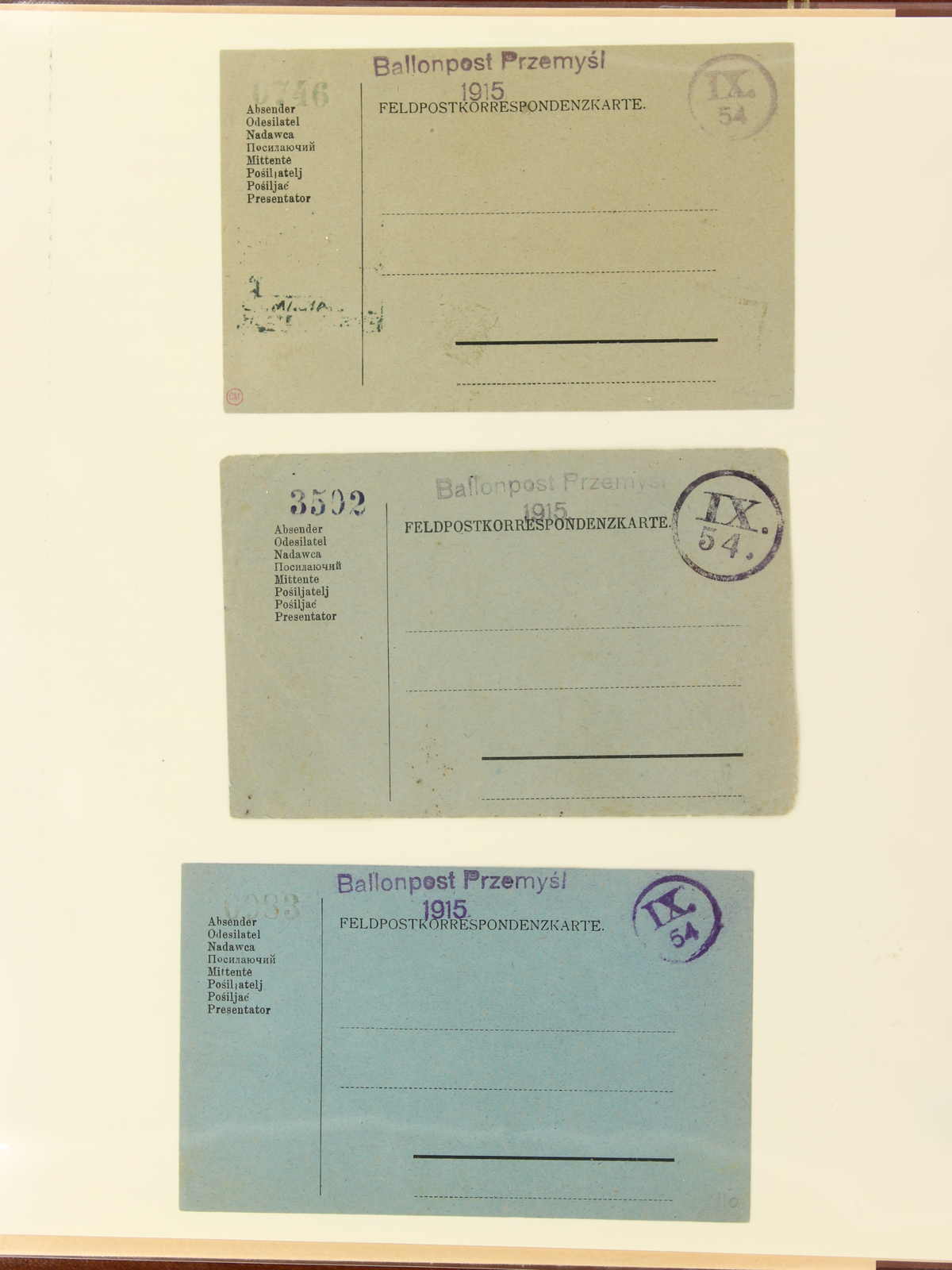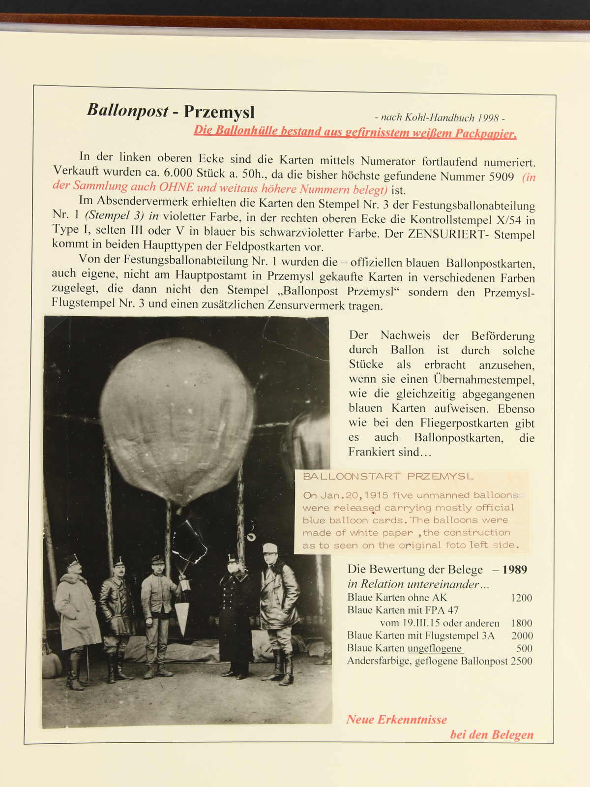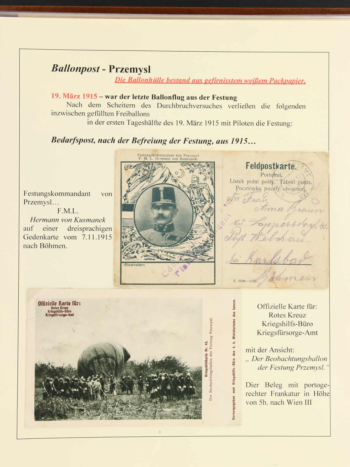 2072 Brief imageBALLONPOST PRZEMYSL: 1915, kleine Dokumentation auf 11 Albenblättern mit seltener Originalfotografie vom 20.1.1915, 3 ungebrauchten Ballonkarten, einer Ballonpostkarte verwendet für Fliegerpost, Erinnerungspost aus Ungarn und Österreich sowie einige Ansichtskarten (Image) (imagea) (imageb) (imagec) (imaged) (imagee) (imagef) (imageg) (imageh) (imagei) (imagej)