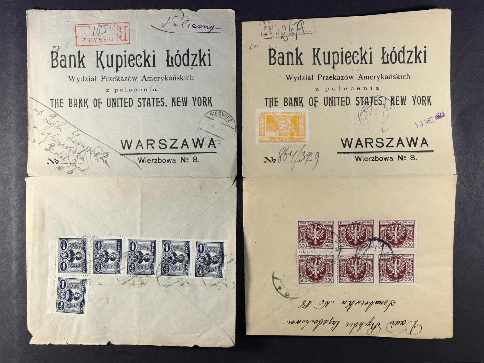 2057 Brief imagePOLEN: 1922/23, kl. Posten Briefe der "BANK OF UNITED STATES NEW YORK" mit Absender aus Ostpolen, teils Einschreiben mit hohen Frankaturen aus Mi-Nr. 174/182, alle nach Warschau adressiert, ges. 8 Briefe, alle dreiseitig geöffnet, etwas unterschiedliche Qualität (Image) (imagea) (imageb) (imagec)