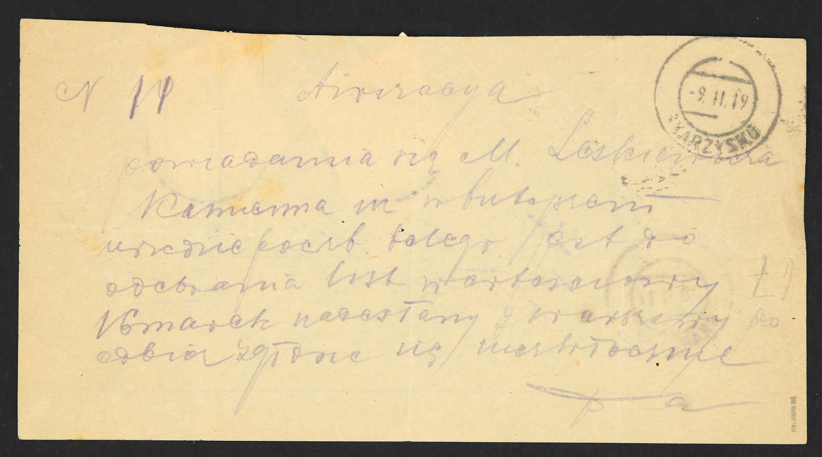 Ankunftsstempel "WARSZAWA 5.2.19", sign. Petriuk (Image)