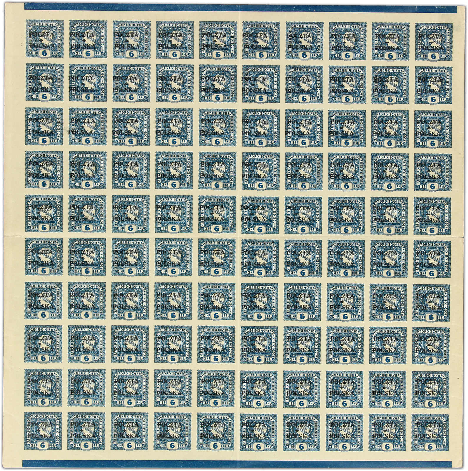 1919, 6 H. Doplata im Ganzbogen, postfrisch, vertikal und horizontal mittig gefaltet, horizontal links und rechts angetrennt, jede Marke signiert Mikstein, im Bogen sign. Lenke PZF (Image)