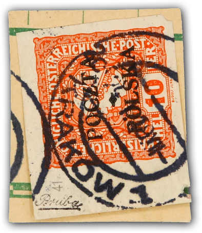 adressiert nach SANDOMIERZ, die österr. Portomarken sind als prov. Zustellgebühr verwendet, einwandfrei, Fotoattest Petriuk (Image) (imagea)