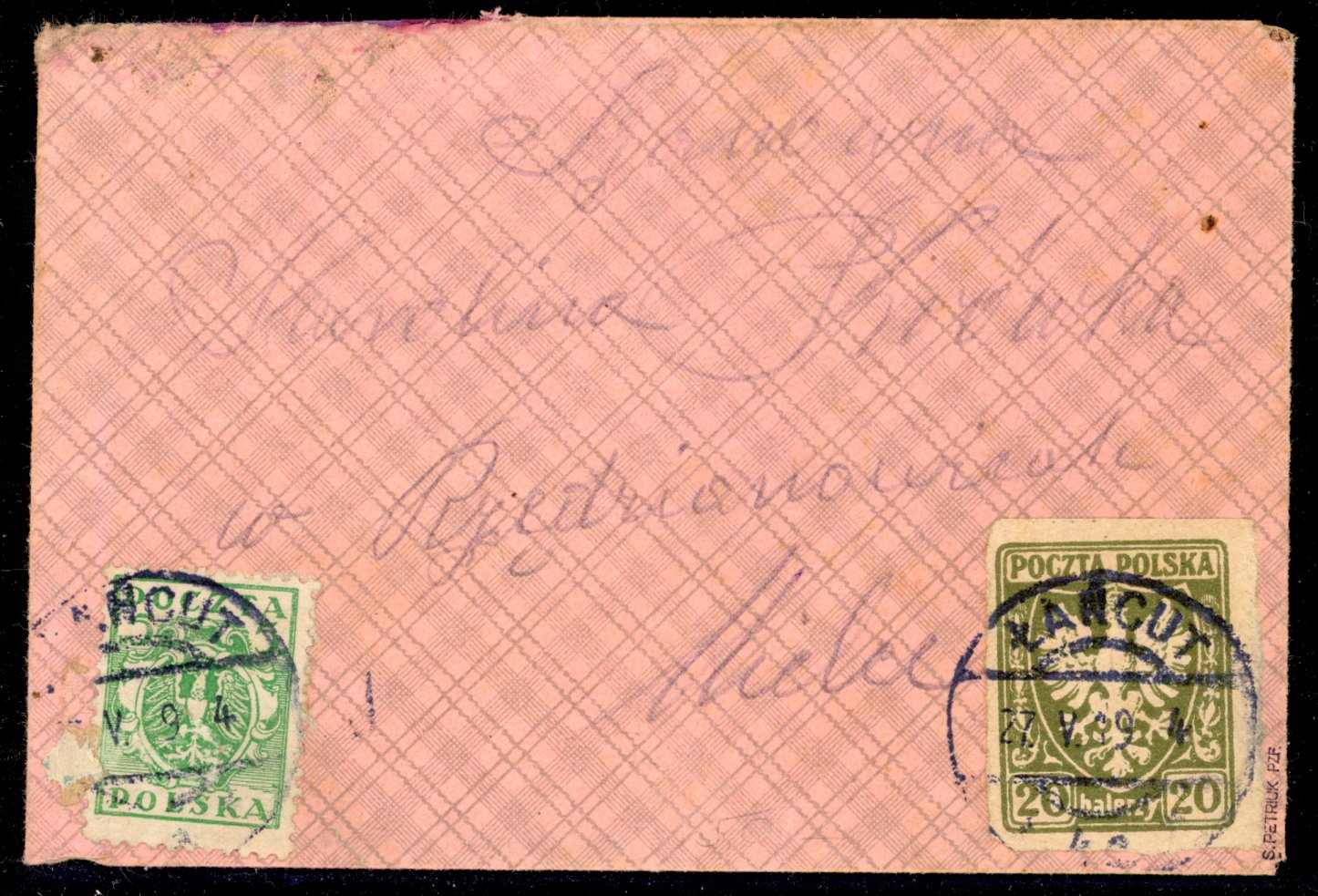1919, 20 H. Freimarke für Galizien in Mischfrankatur mit 5 F. Nordpolen auf Briefchen ab "LANCUT 27.V.19" nach Rzedzianowice, Teil der Briefklappe fehlt, sign. Petriuk (Image)